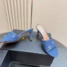 Alaia 2025 Oeillets Embellished Leather Sandals Denim Lambskin 299670