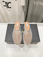 ALAIA FLAT MULES IN SILVER MESH FISHNET