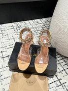 ALAIA HIGH SANDAL IN BEIGE CALFSKN AND FILM WITH CRYSTAL