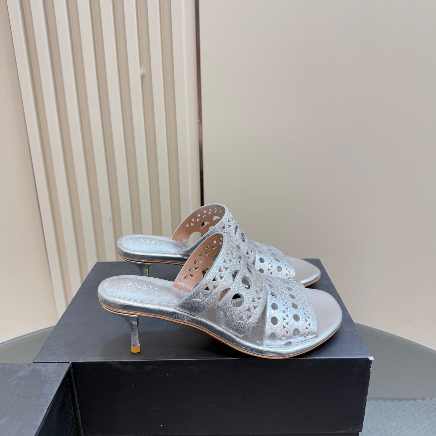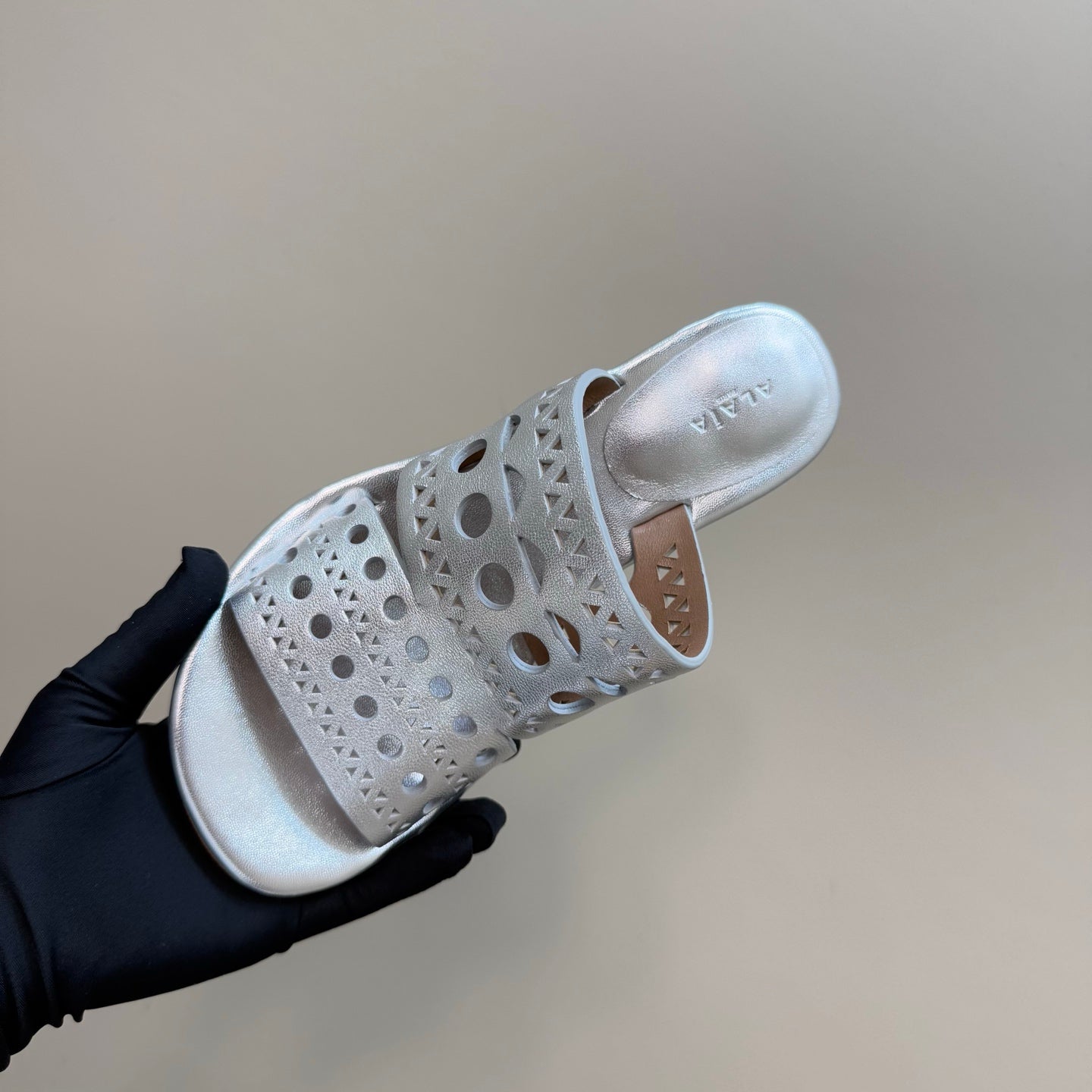 alaia mule silver metalic vienne lambskin