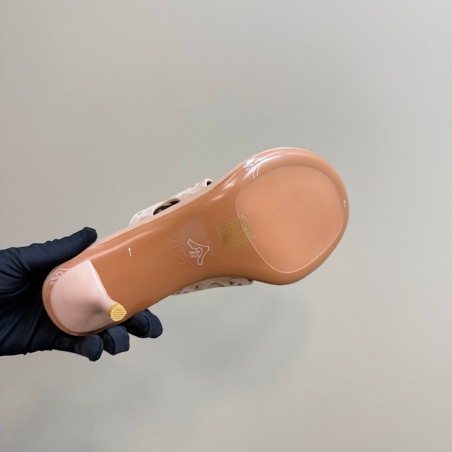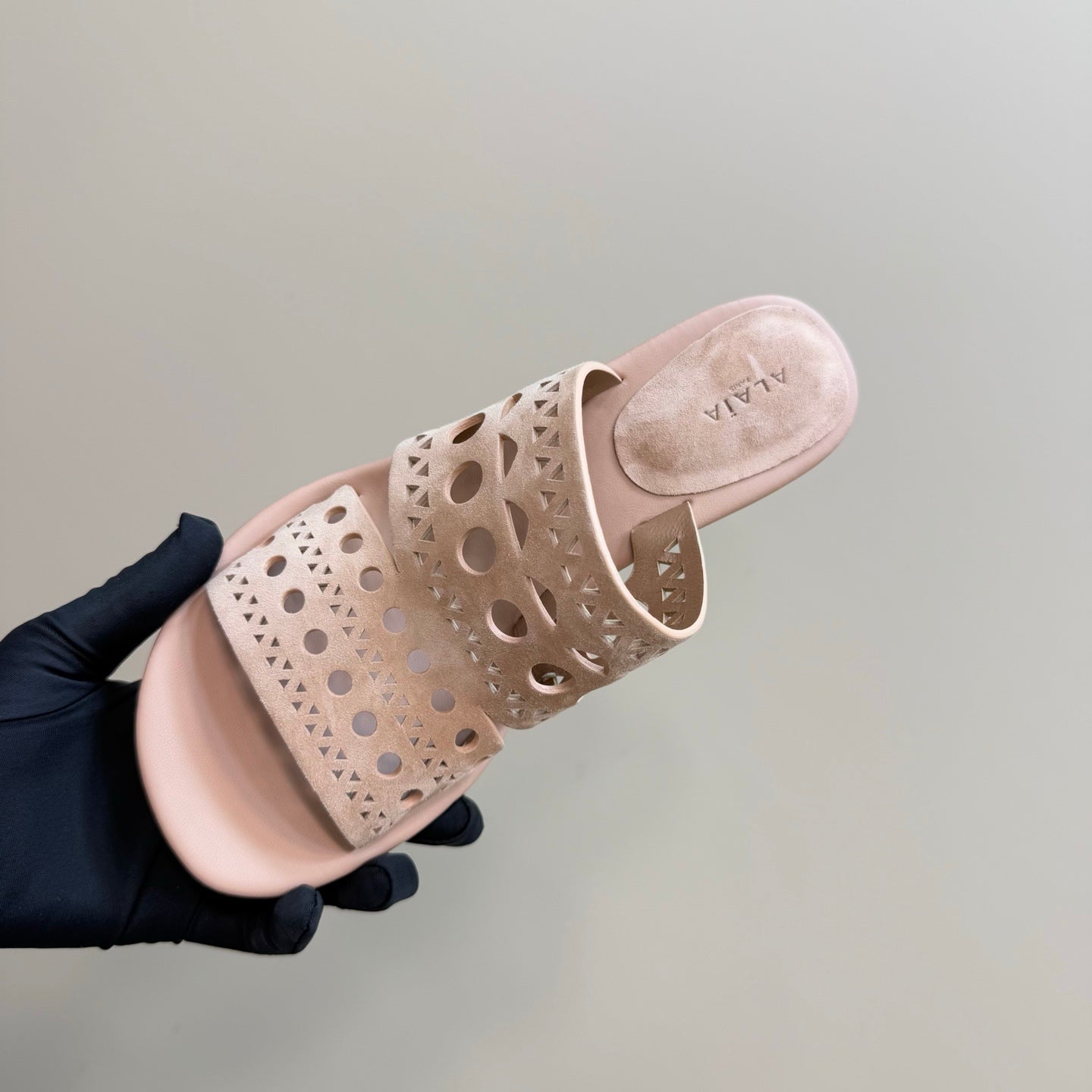 alaia sandal mule flower beige suede