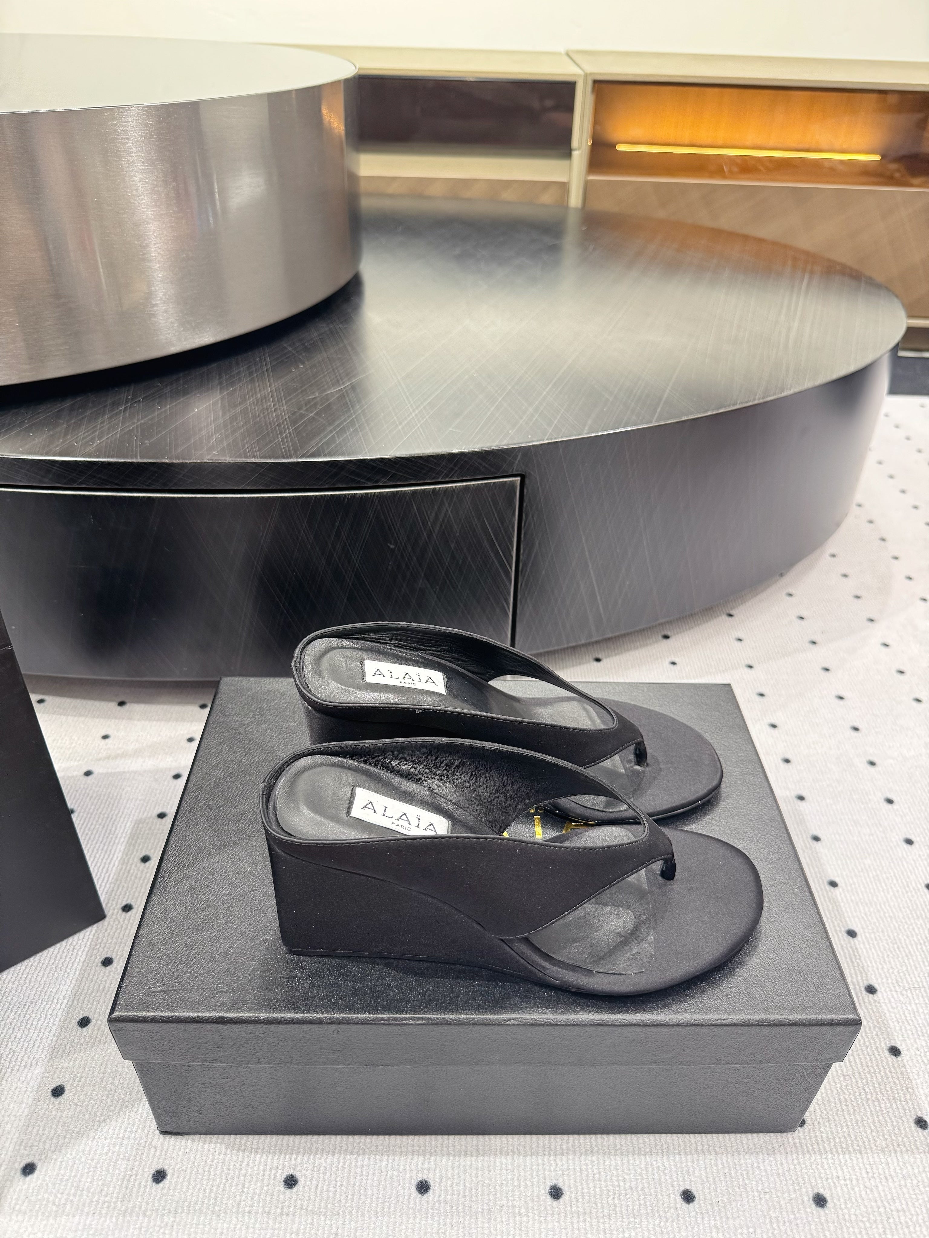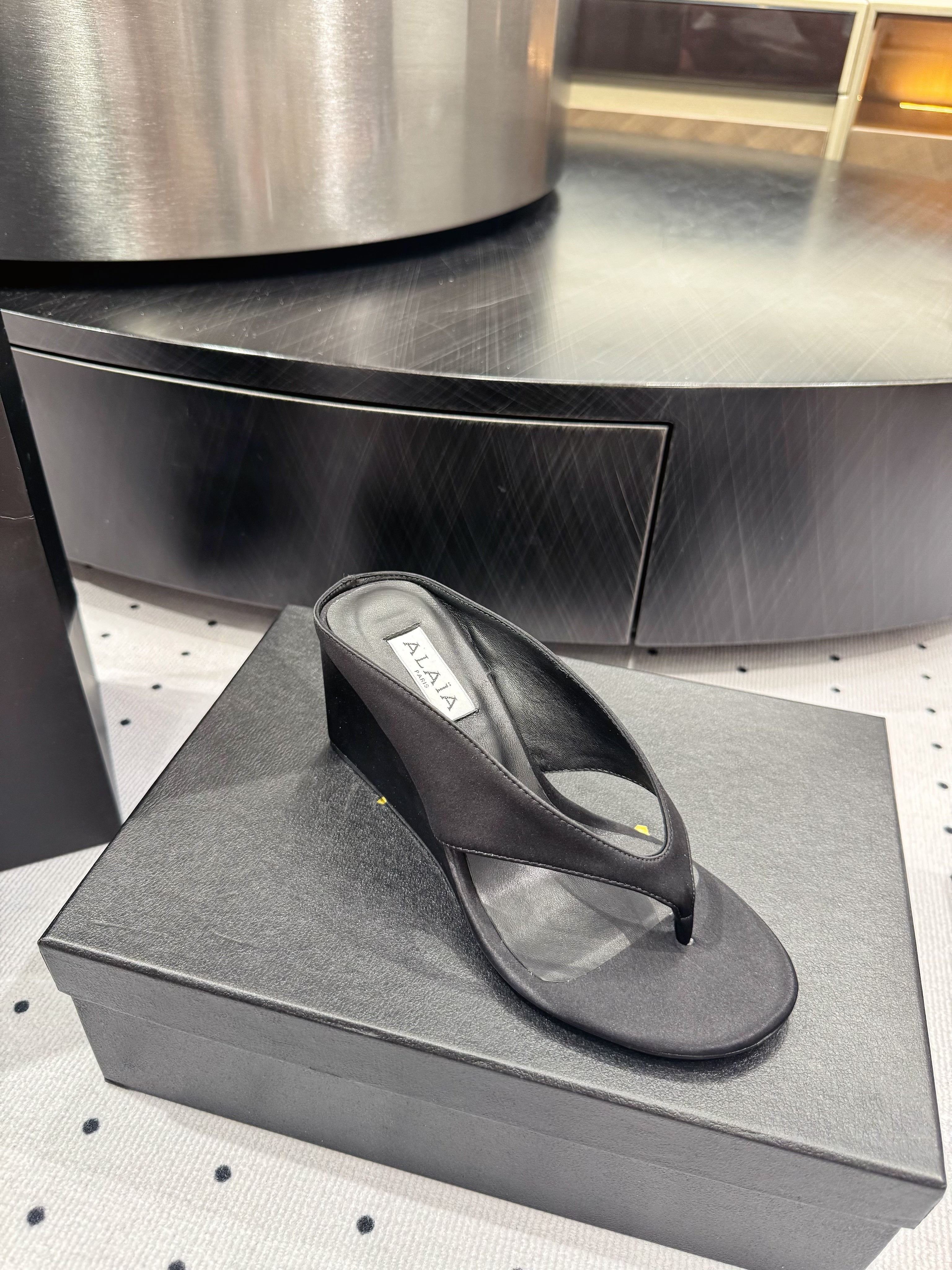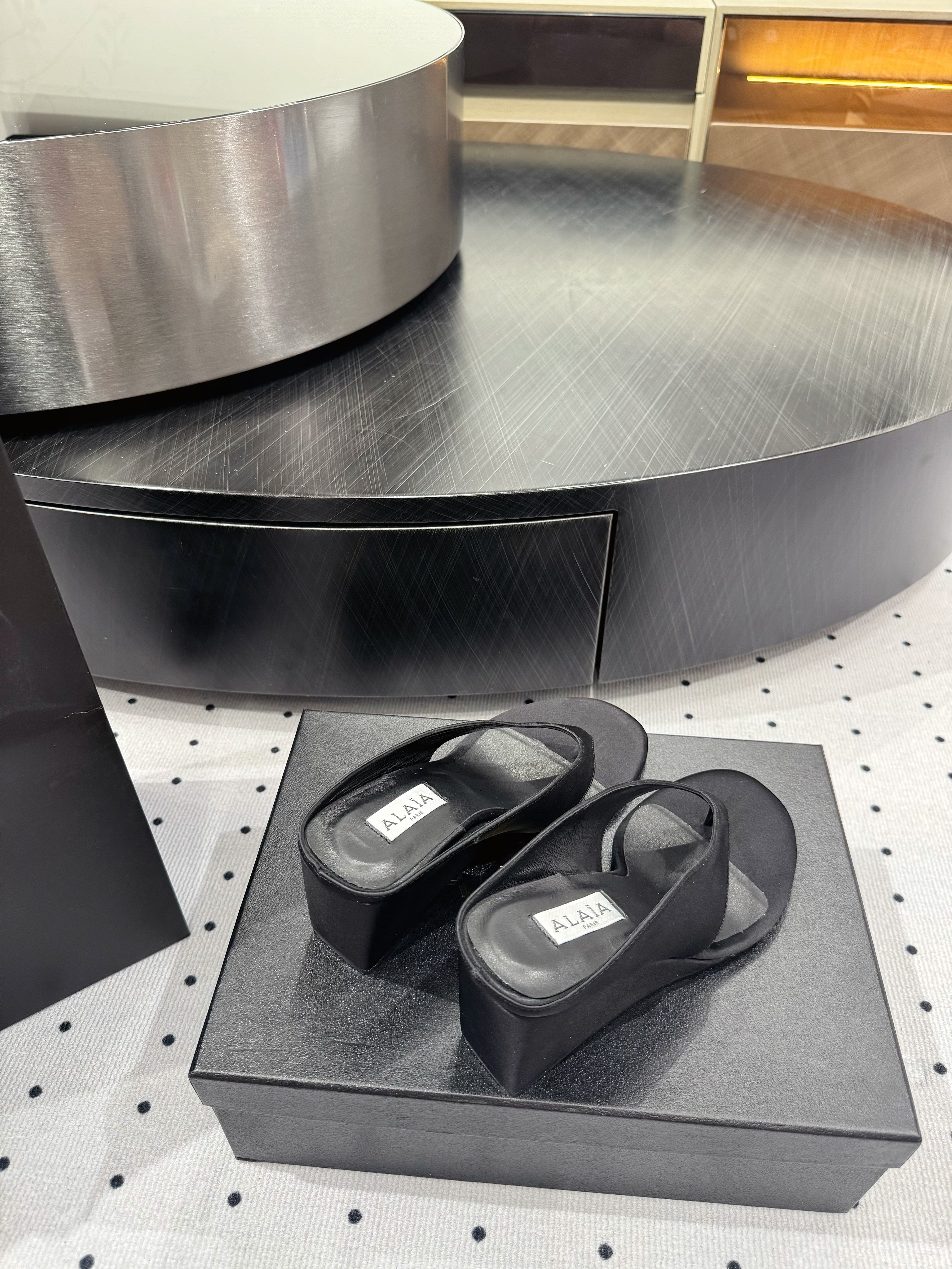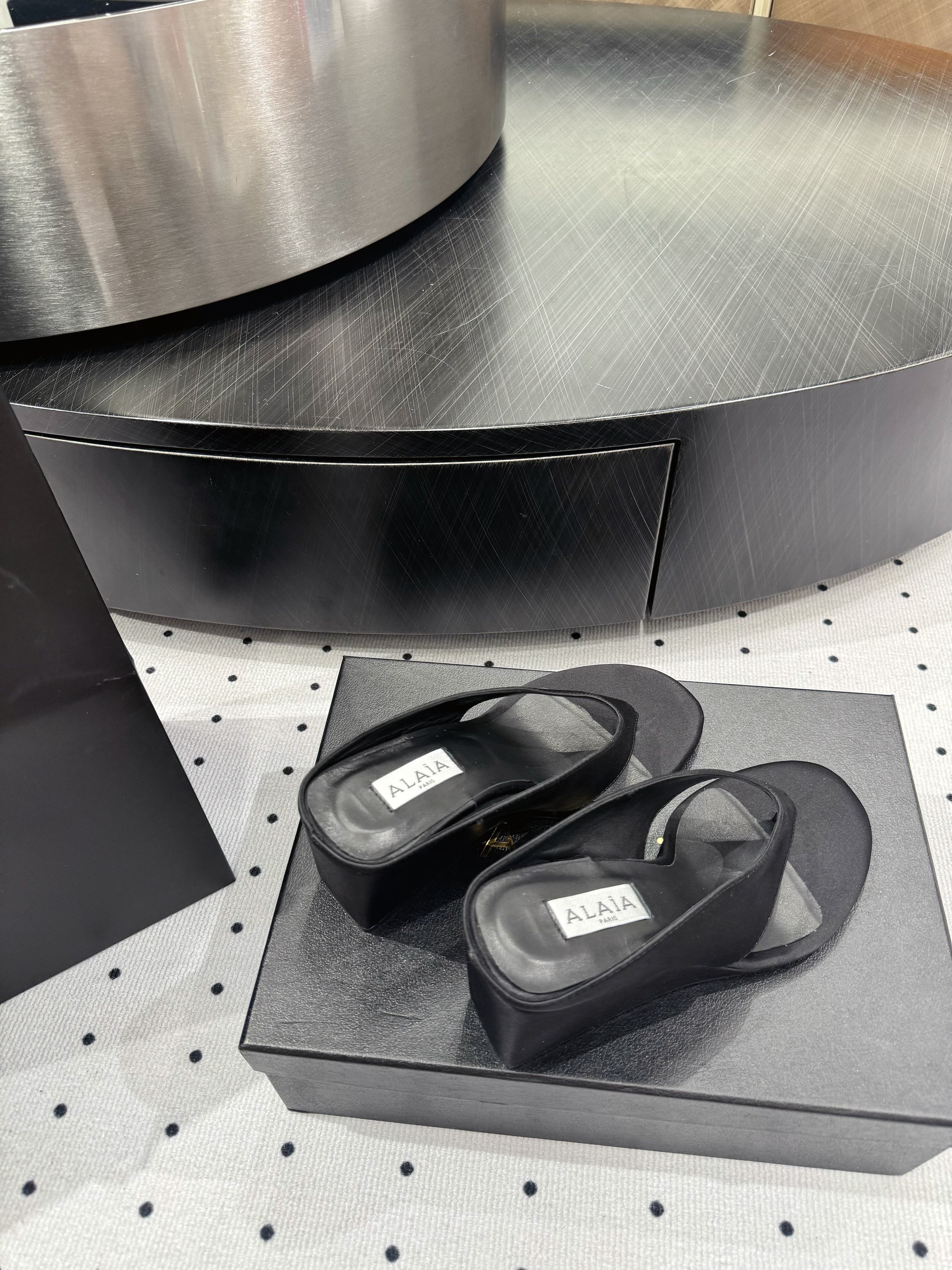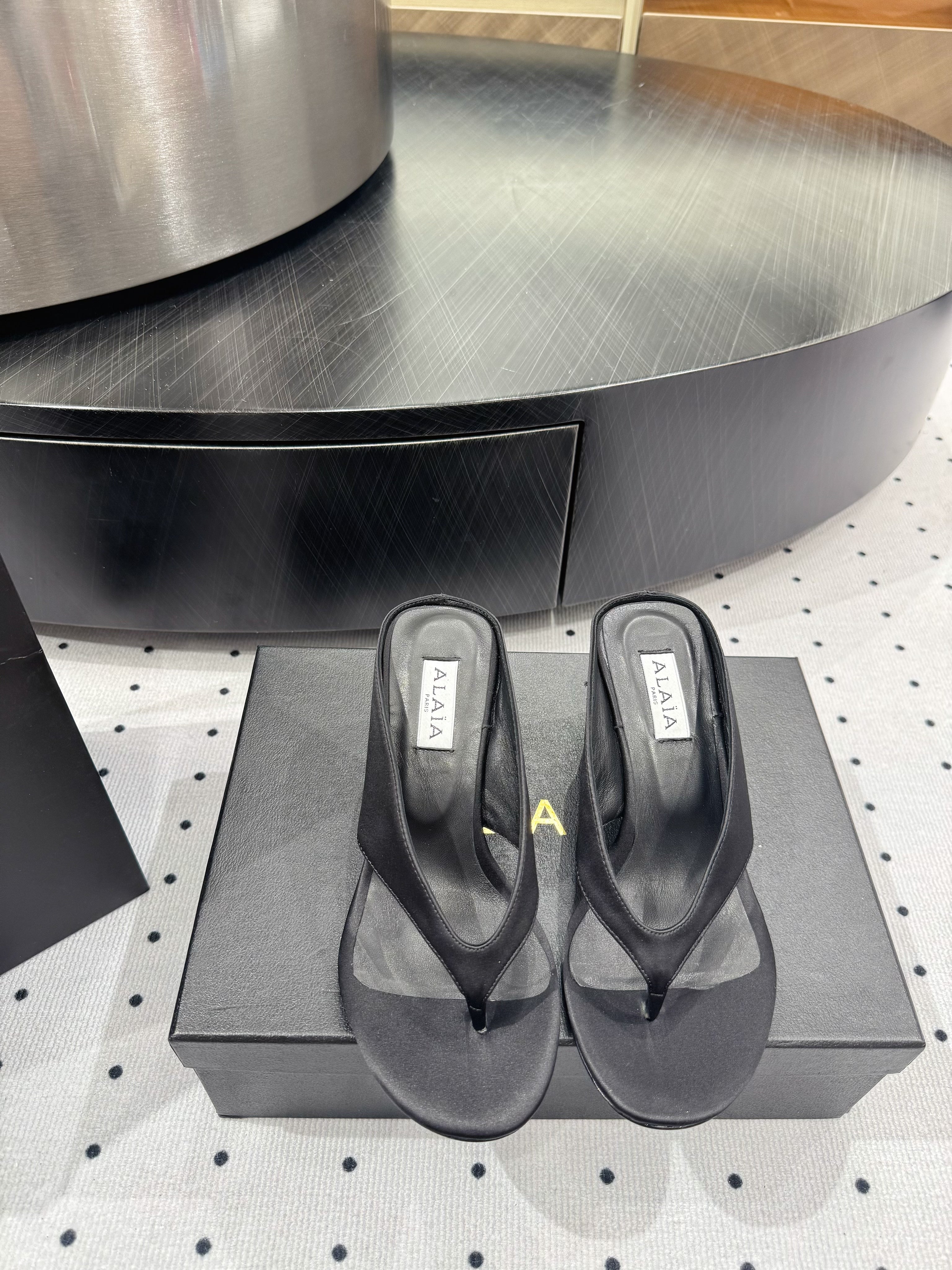 Alaia 25 Cube Thong Mules Black Sheepskin 296090