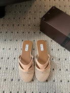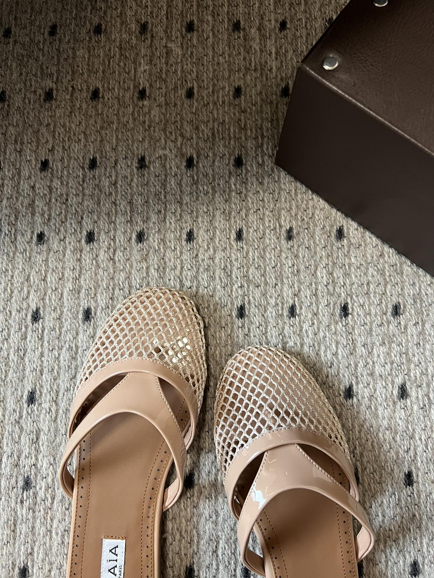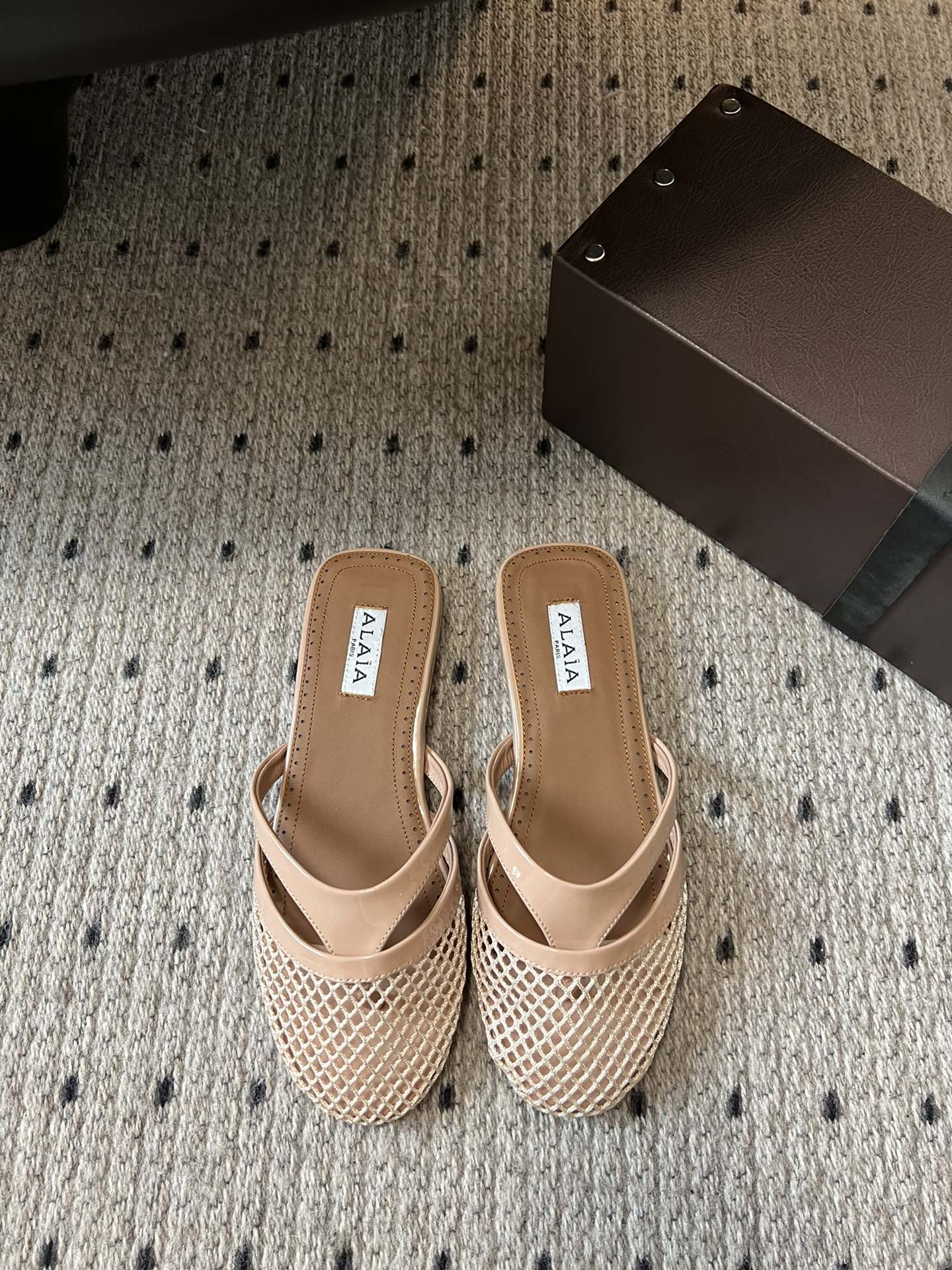 Alaia 25 Infradito Fishnet Flat Mules Nude Lampskin 303707