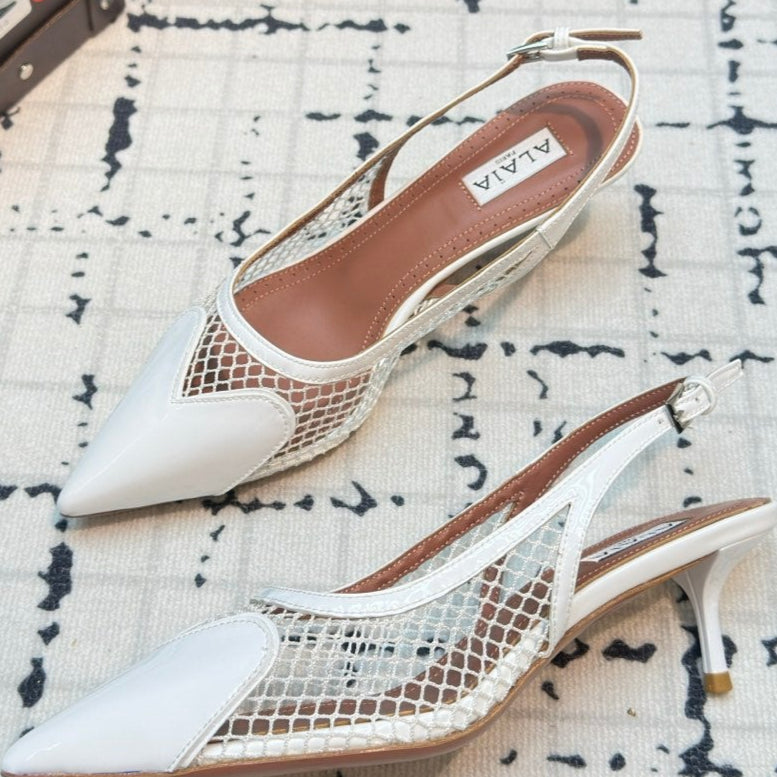 Alaia Heart 50mm Heels Slingbacks White Sheepskin 810202