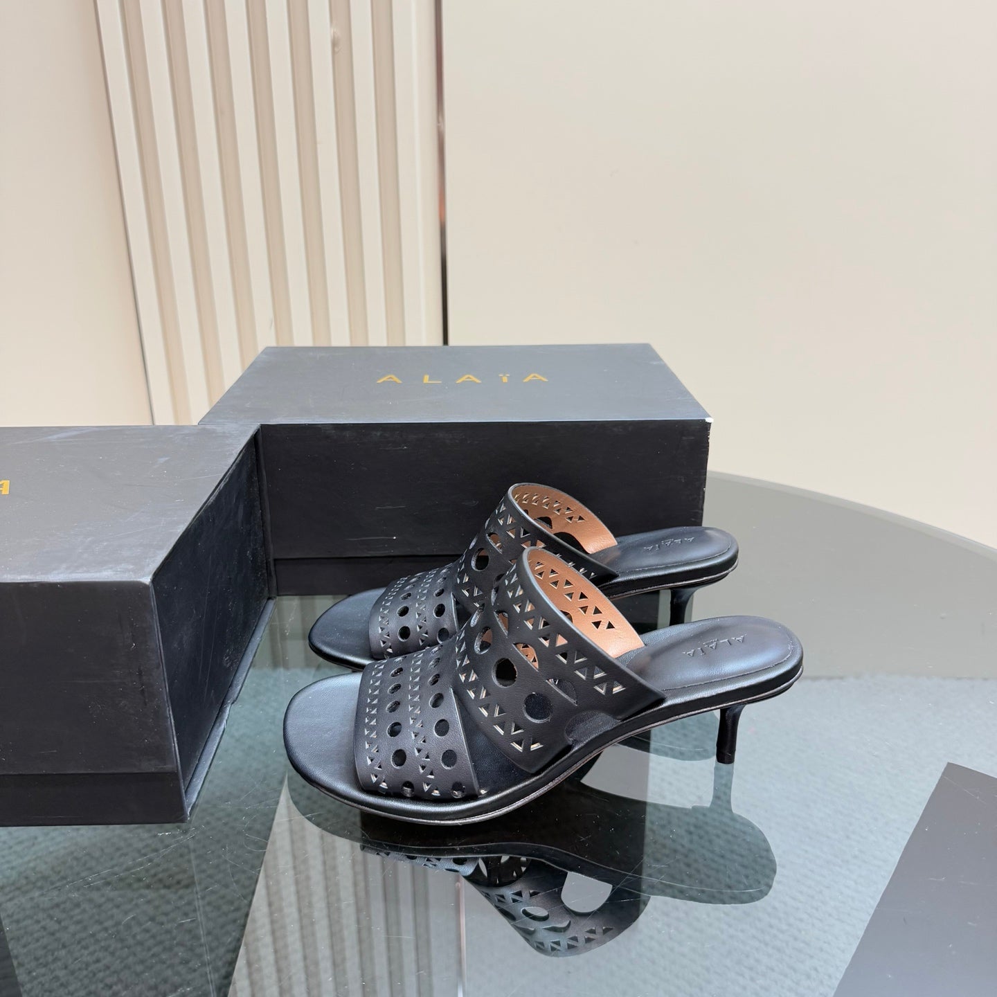 Alaia Fishnet Thong Heels Sandals Black Lambskin 299658