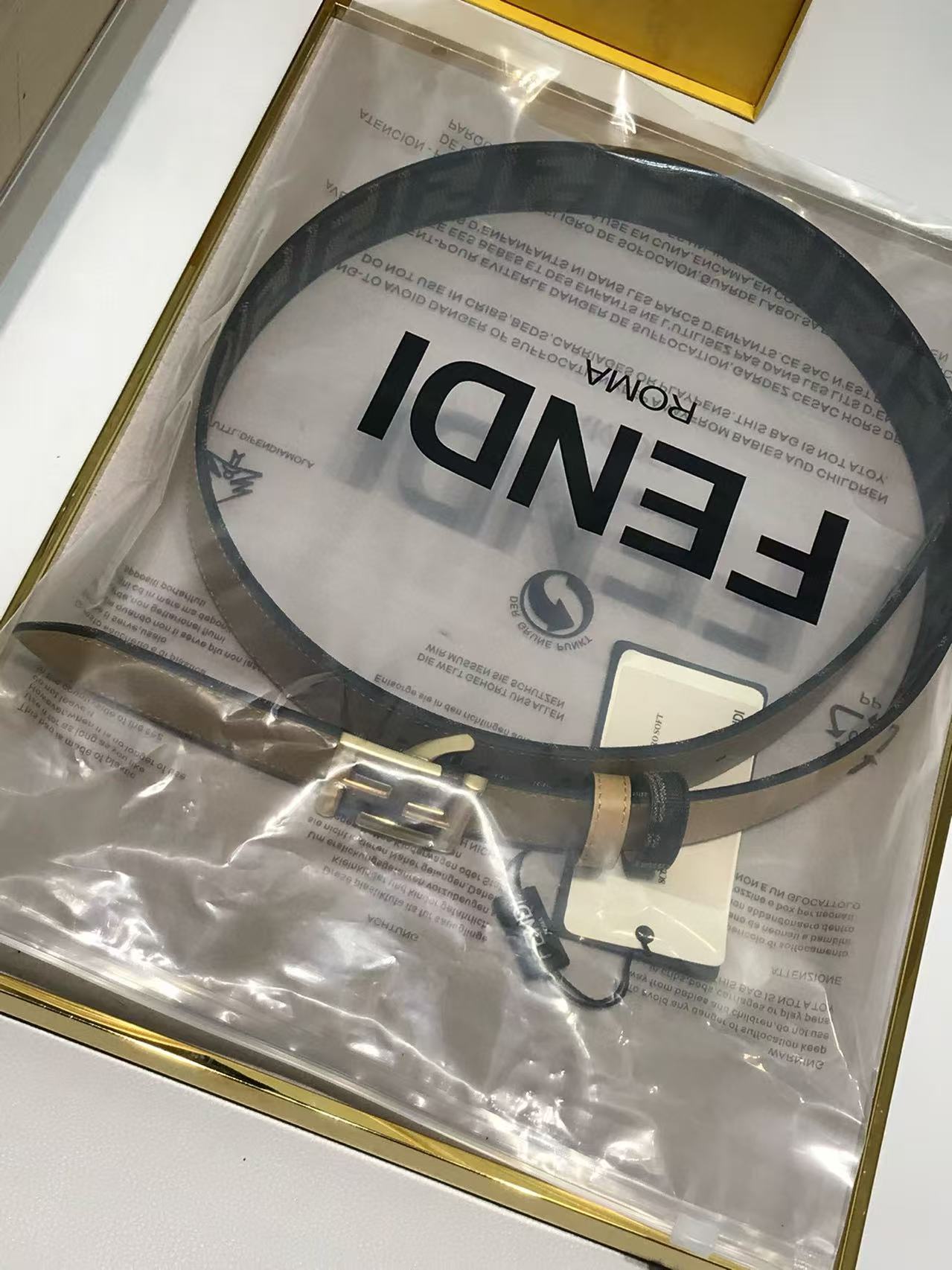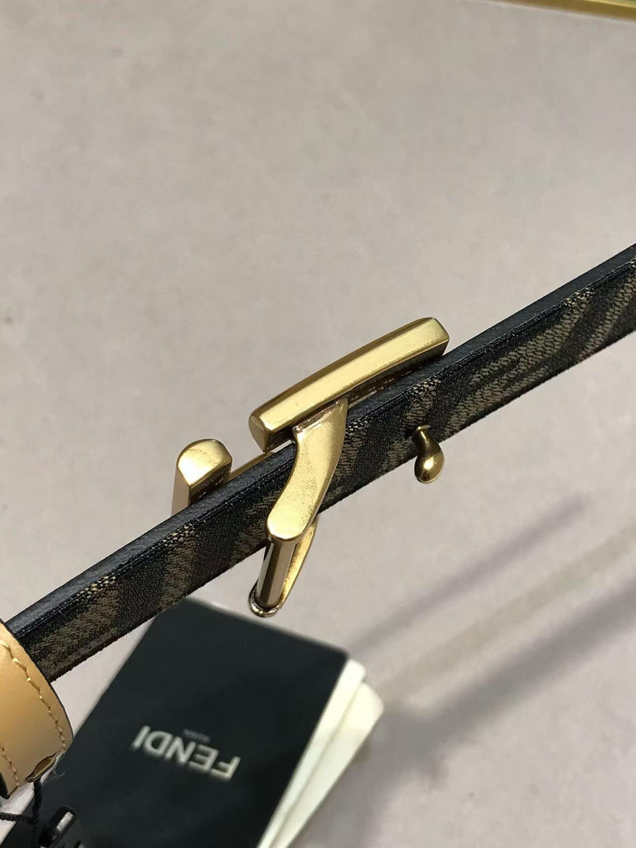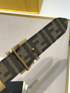 FF Belt 35mm Monogram Canvas Beige Calfskin Gold Hardware