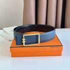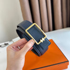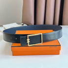 HM TUBE H BELT BUCKLE & REVERSIBLE BLACK AND AEGEAN BLUE LEATHER STRAP 38MM GOLD HARDWARE