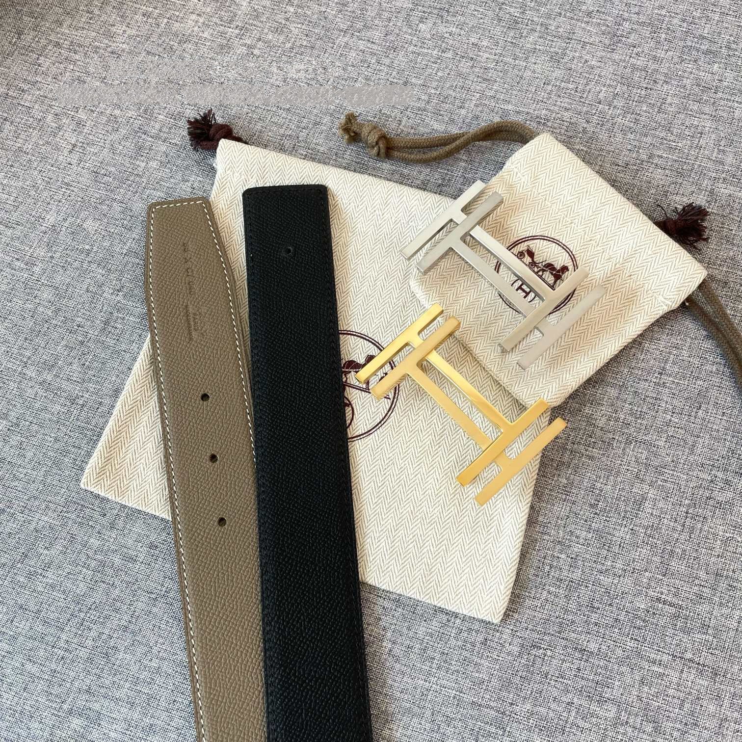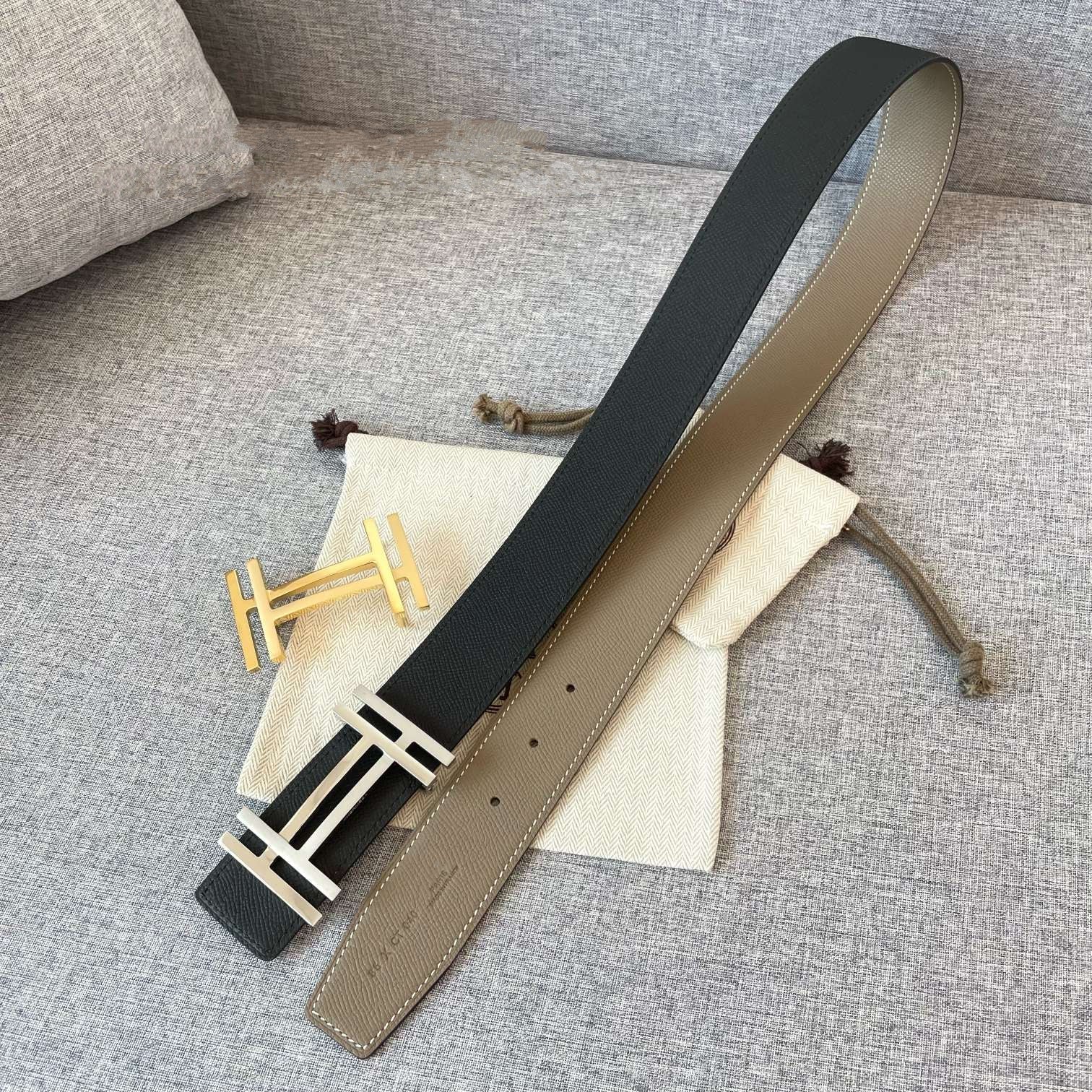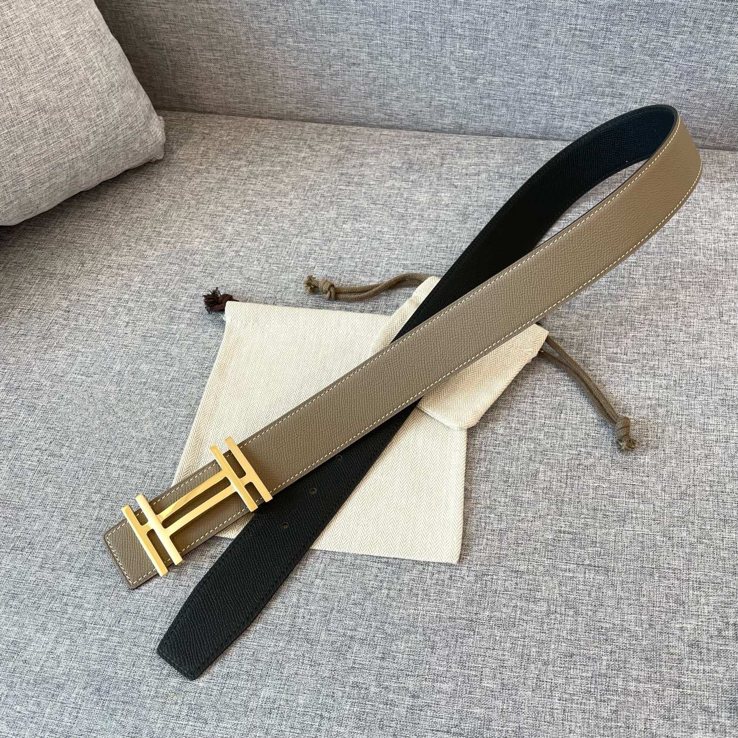 H CONSTANCE REVERSIBLE BELT 38MM BLACK BUCKLE GOLD TIN GREY LEATHER