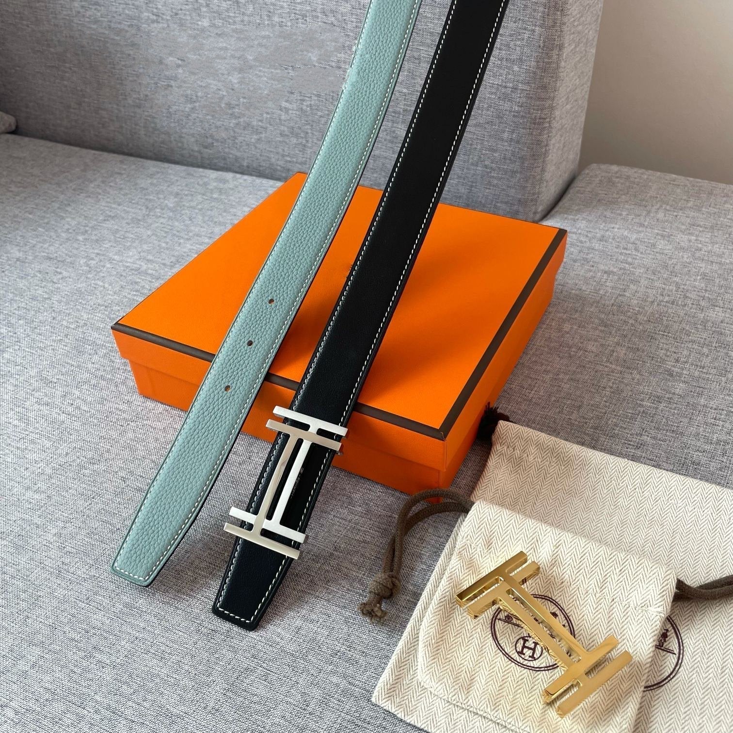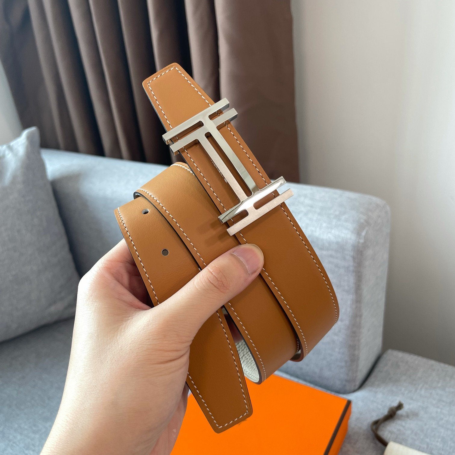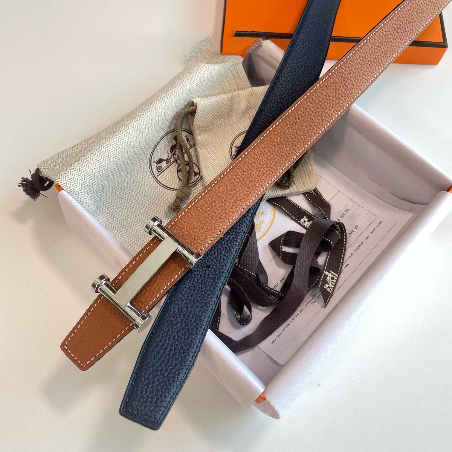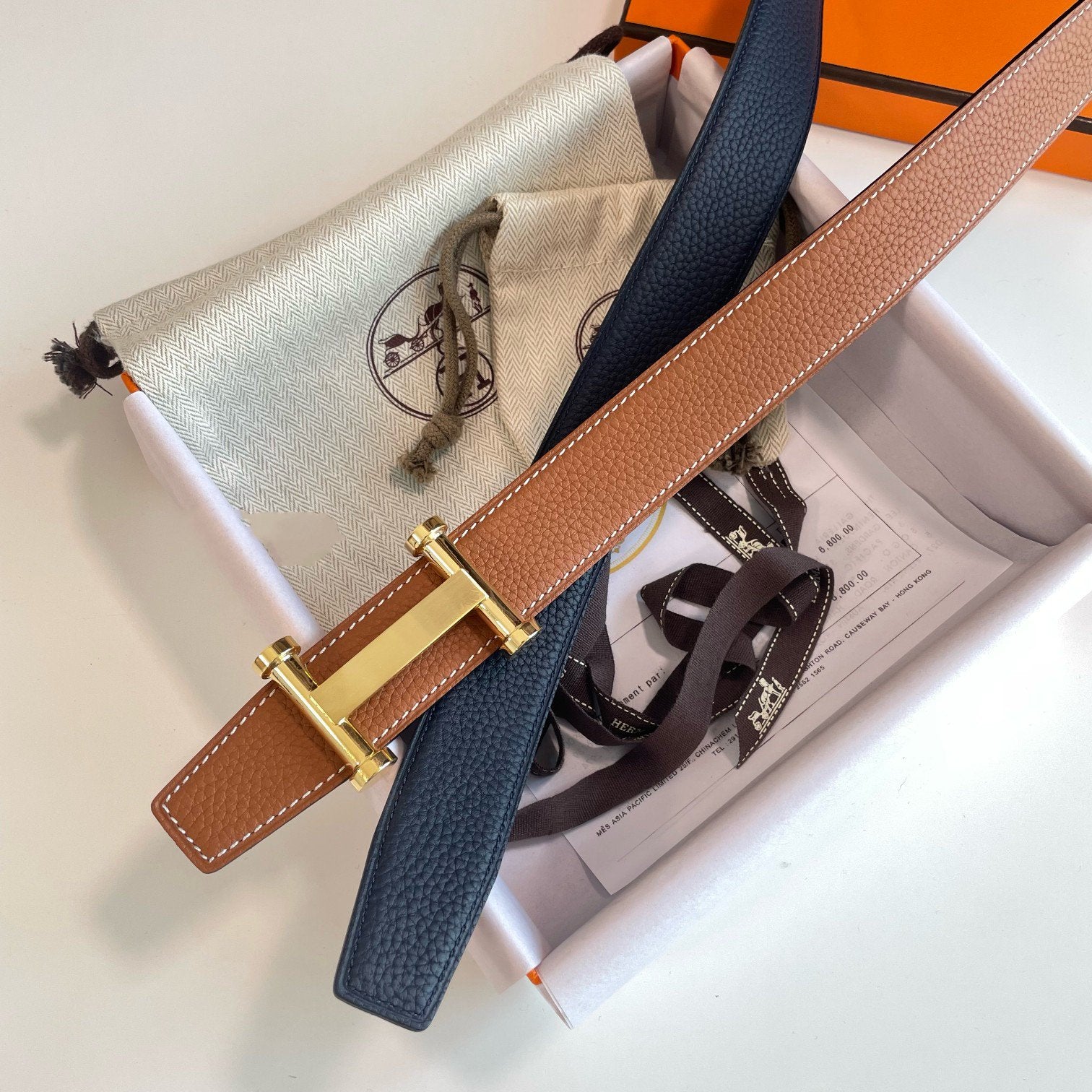 H BELT GOLD BUCKLE BROWN BLACK LEATHER RIVERSIBLE 3.8CM