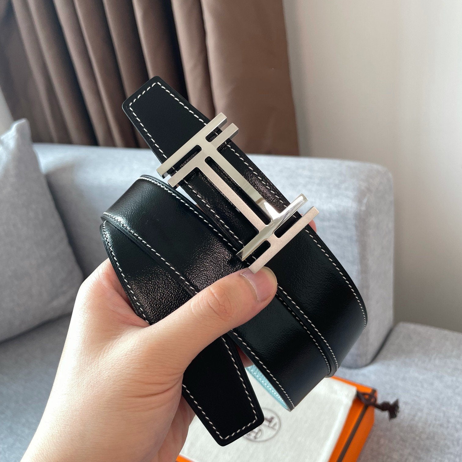 H BELT SILVER BUCKLE 3.5 MM SMOOTH LEATHER