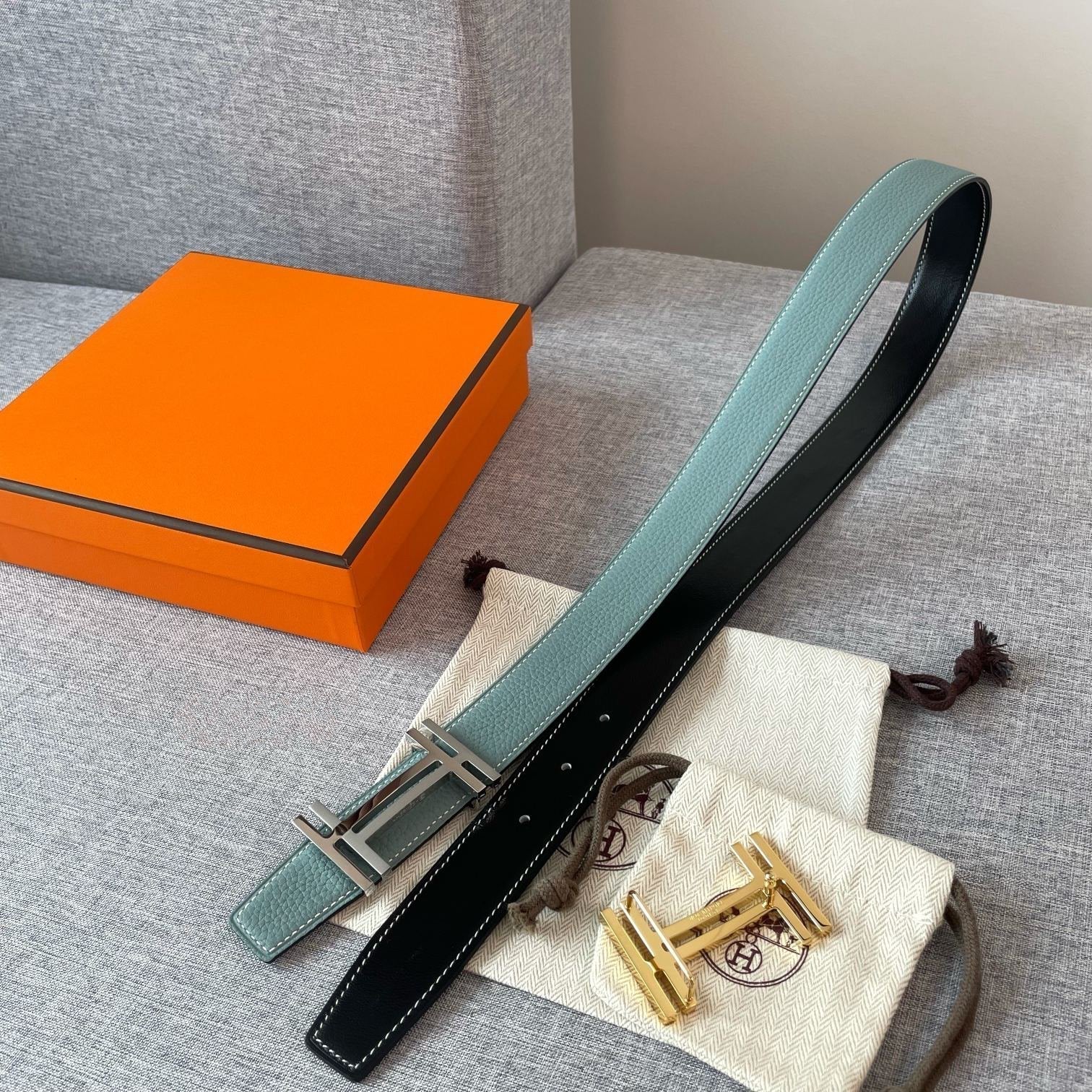 H RIDER RIVERSIBLE BELT 32MM SILVER BUCKLE PRUSSIAN BLUE GOLD LEATHER