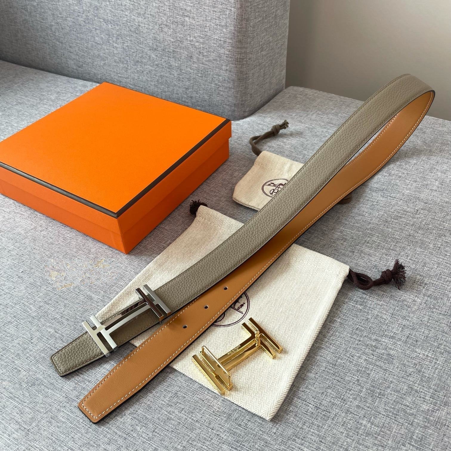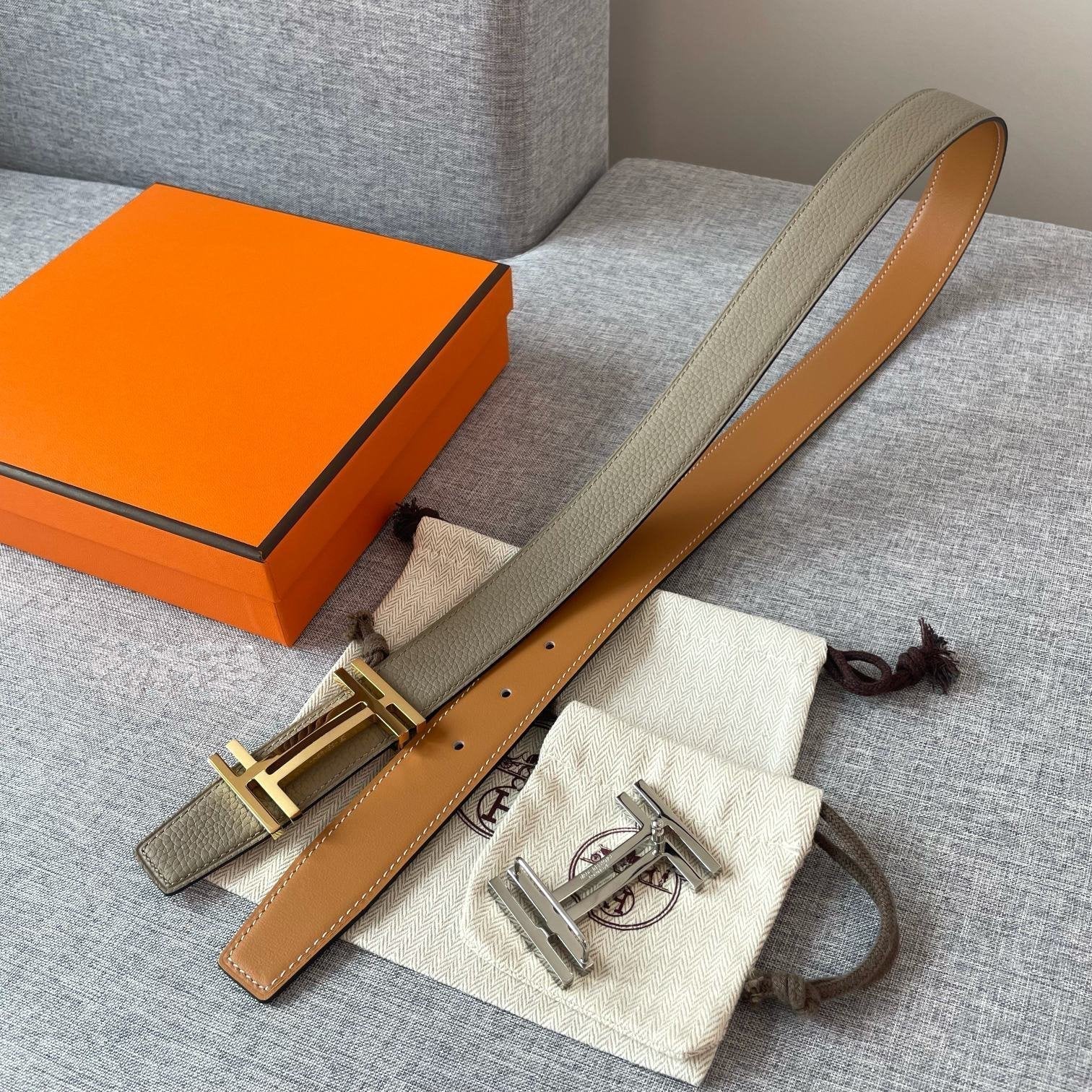 H MARIN REVERSIBLE BELT 32MM SILVER BUCKLE GOLD TIN GREY LEATHER
