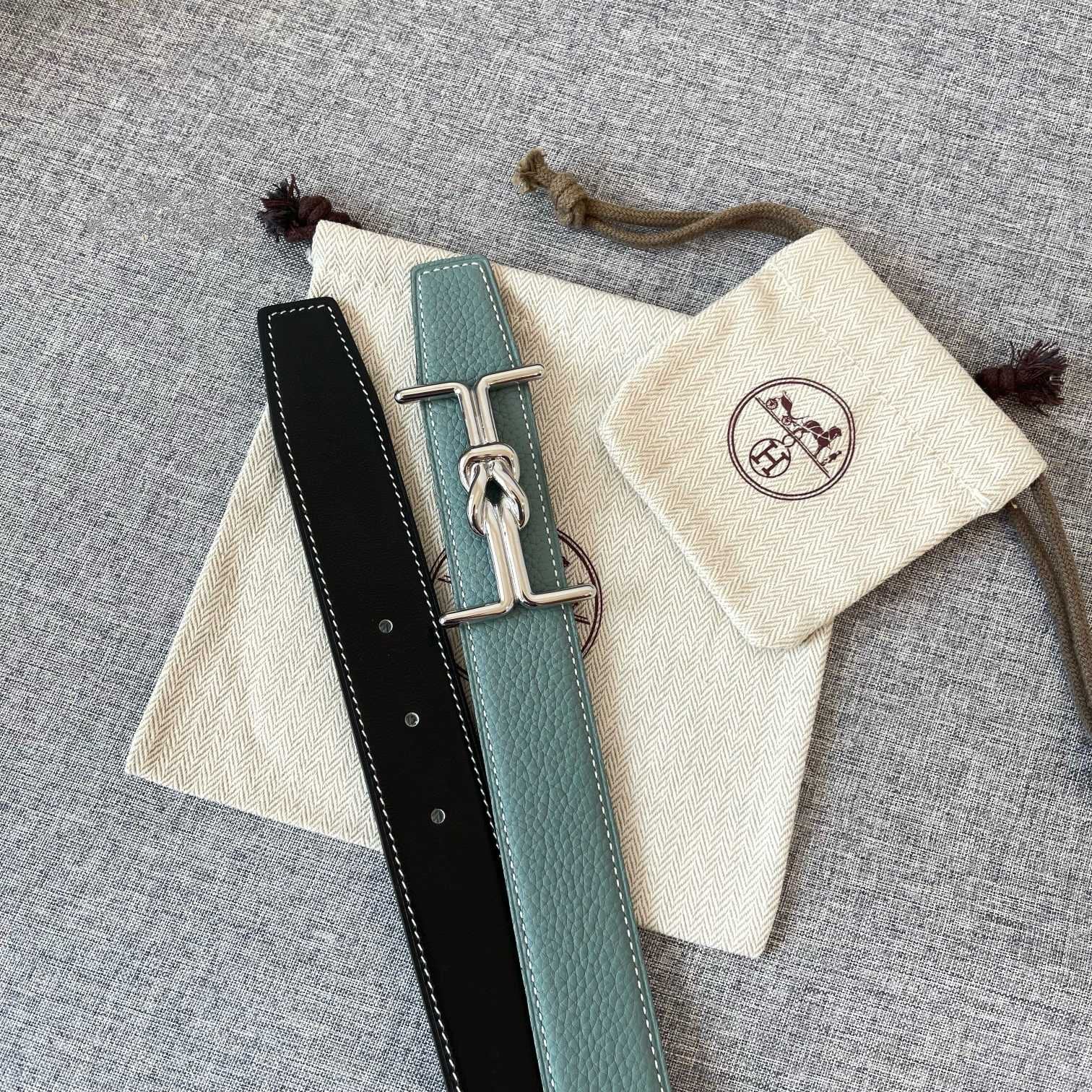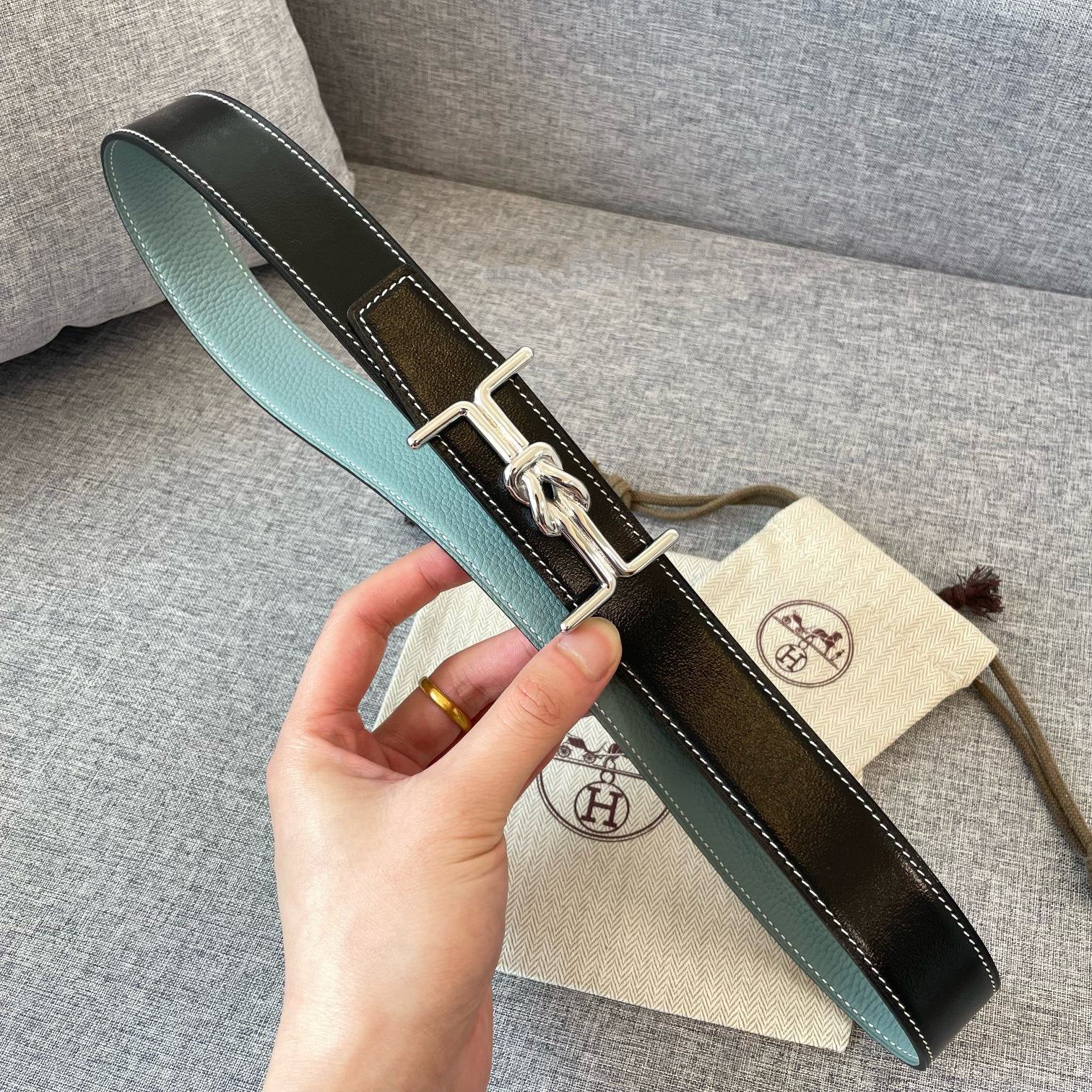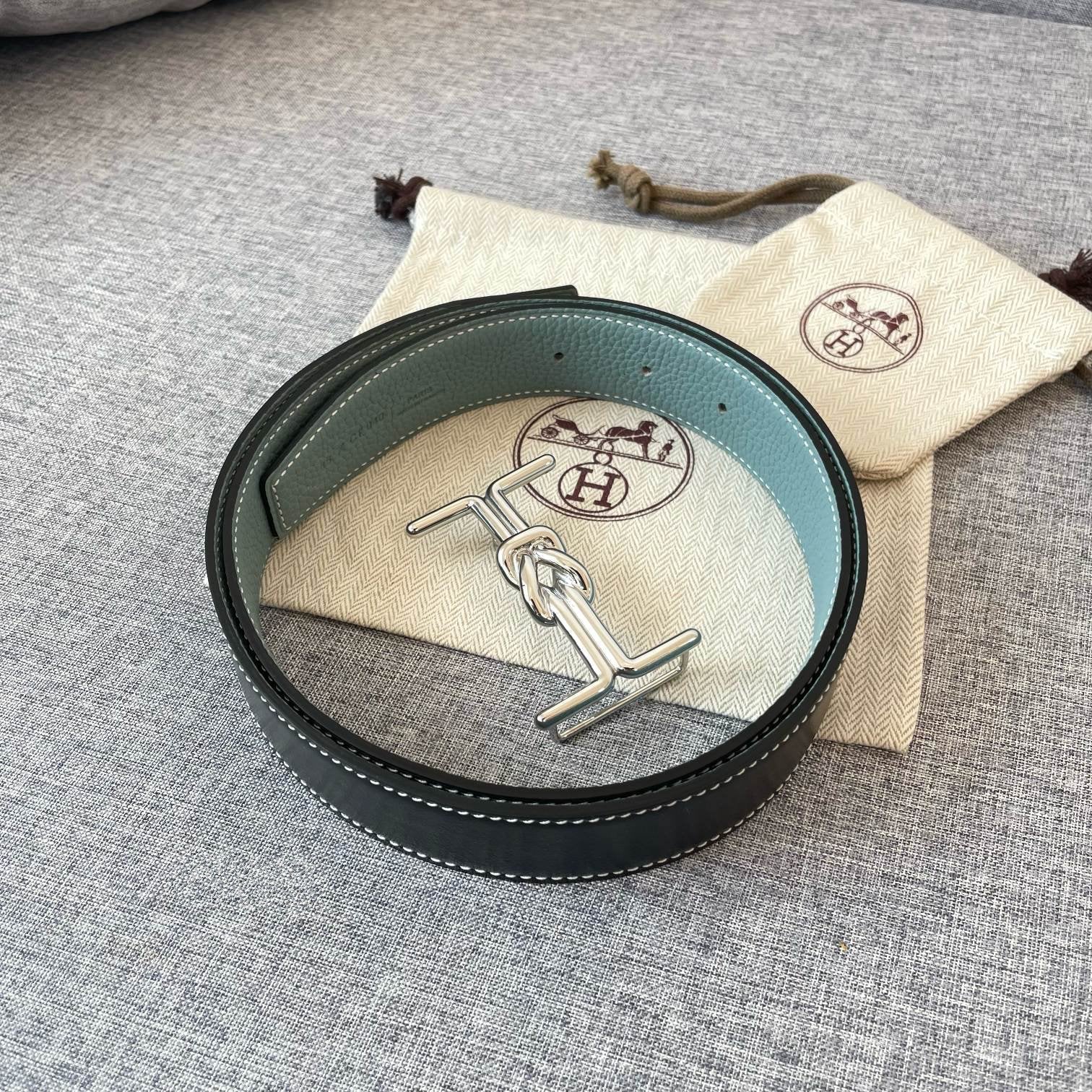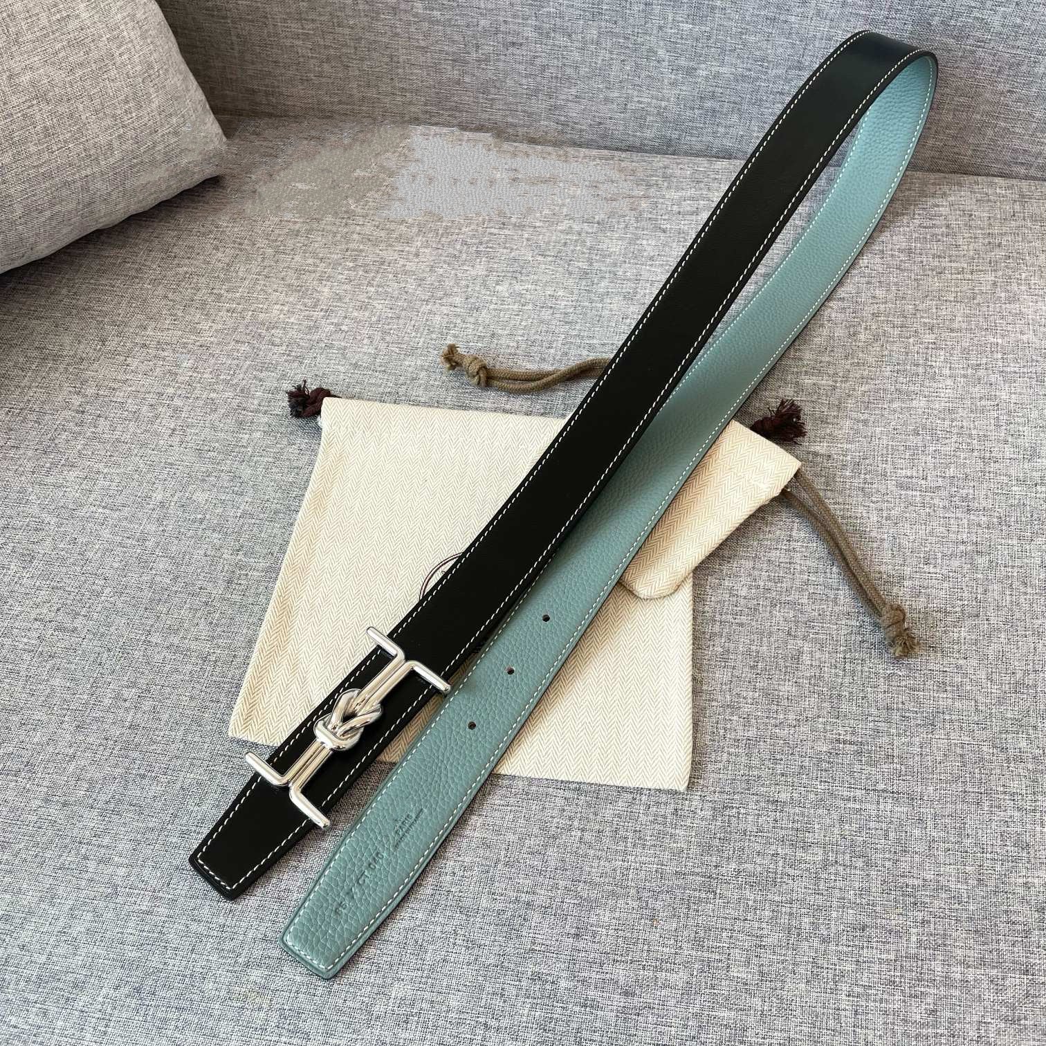 H BELT HORSE BUCKLE BLUE BLACK LEATHER REVERSIBLE 3.8CM