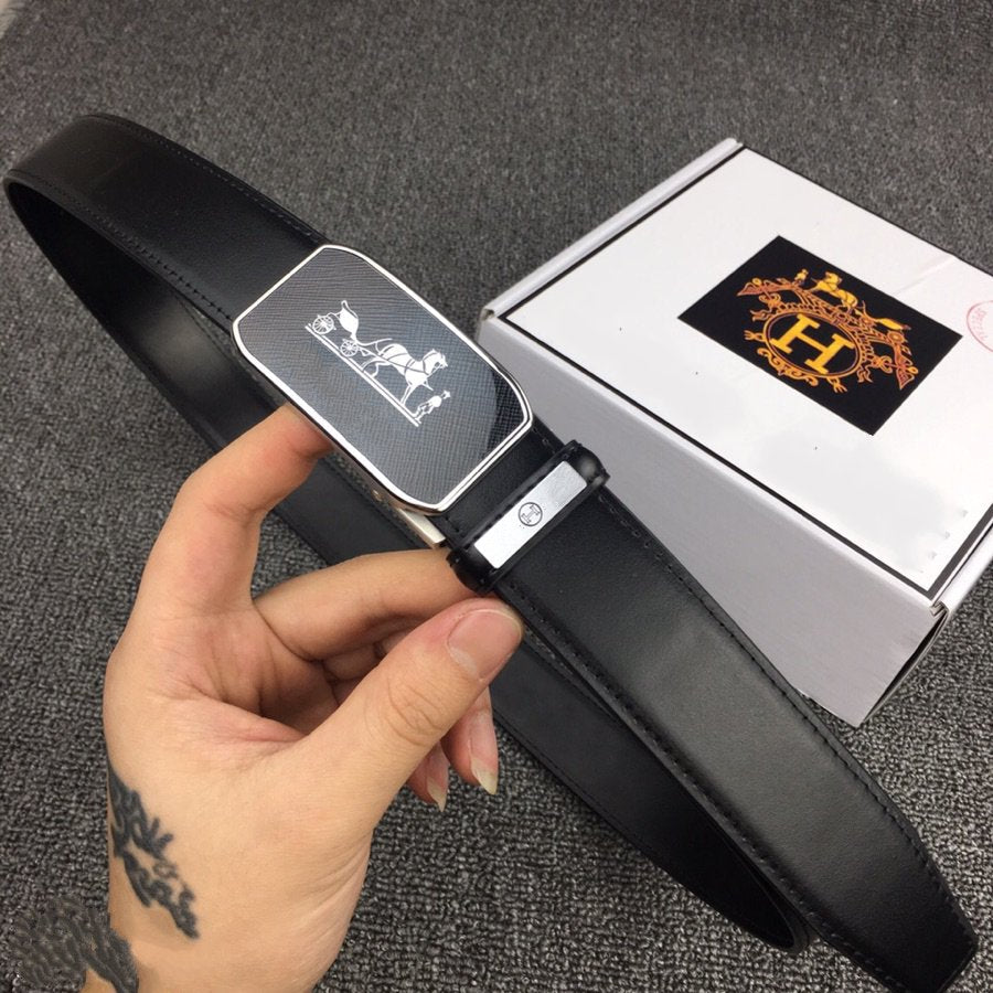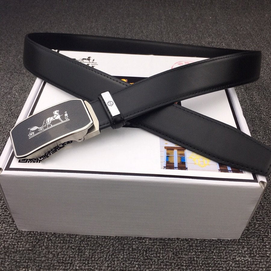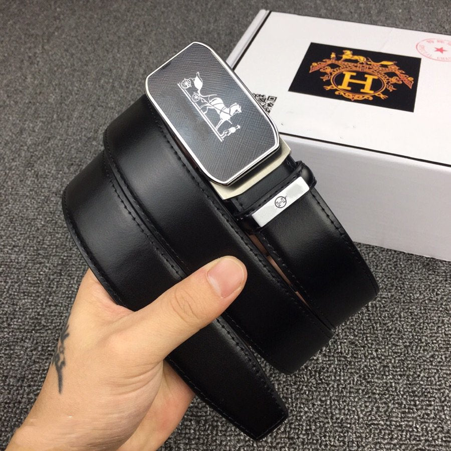H BELT HORSE BUCKLE BLACK LEATHER REVERSIBLE 3.8CM