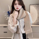 ANAGRAM DOUBLE-SIDED SCARF 182 CM IN CAMEL BEIGE WOOL AND CASHMERE 357779