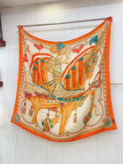 Carré Harnais De Cœur Scarf 140 CM In Orange Colorful Cashmere And Silk 335856