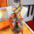 Cavalcades Scarf 90 CM In White Orange Colorful Silk Twill 288858