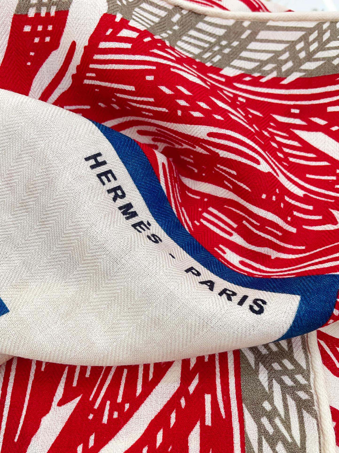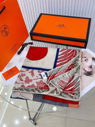 Cavalier en Formes shawl 140 CM In Red Colorful Cashmere And Silk 331717