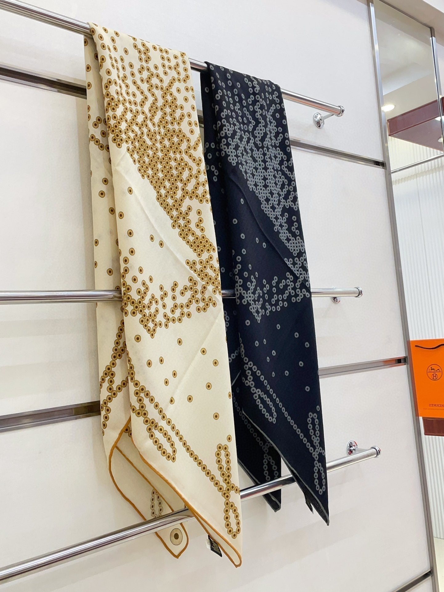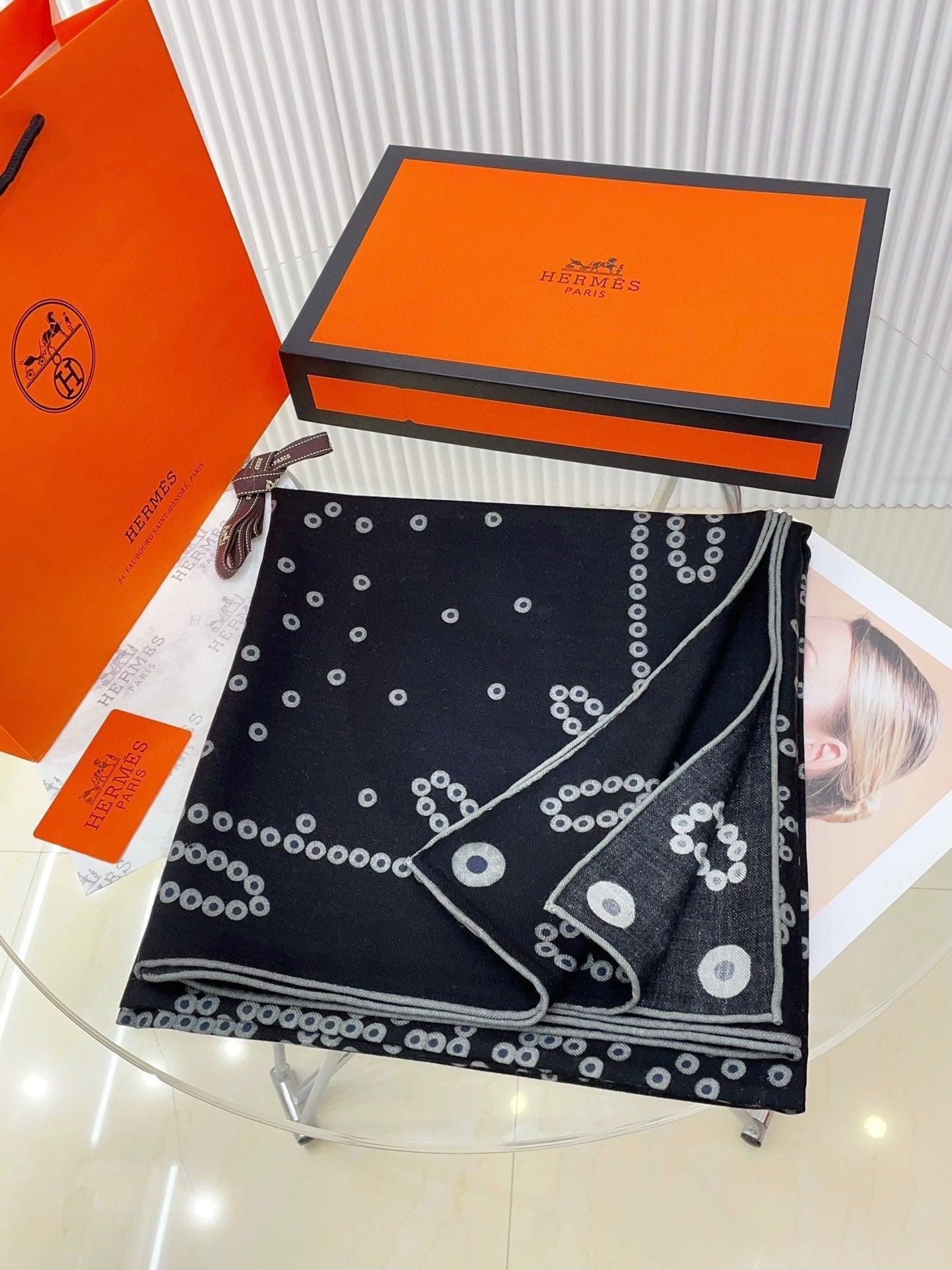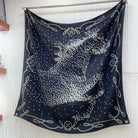 Square Scarf 140 CM Charcoal Blue Pattern Cashmere And Silk