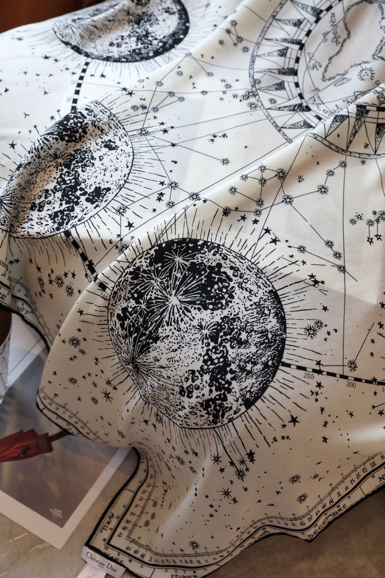 SQUARE SCARF 140 CM IN WHITE MIX BLACK MONOGRAM SILK 393135