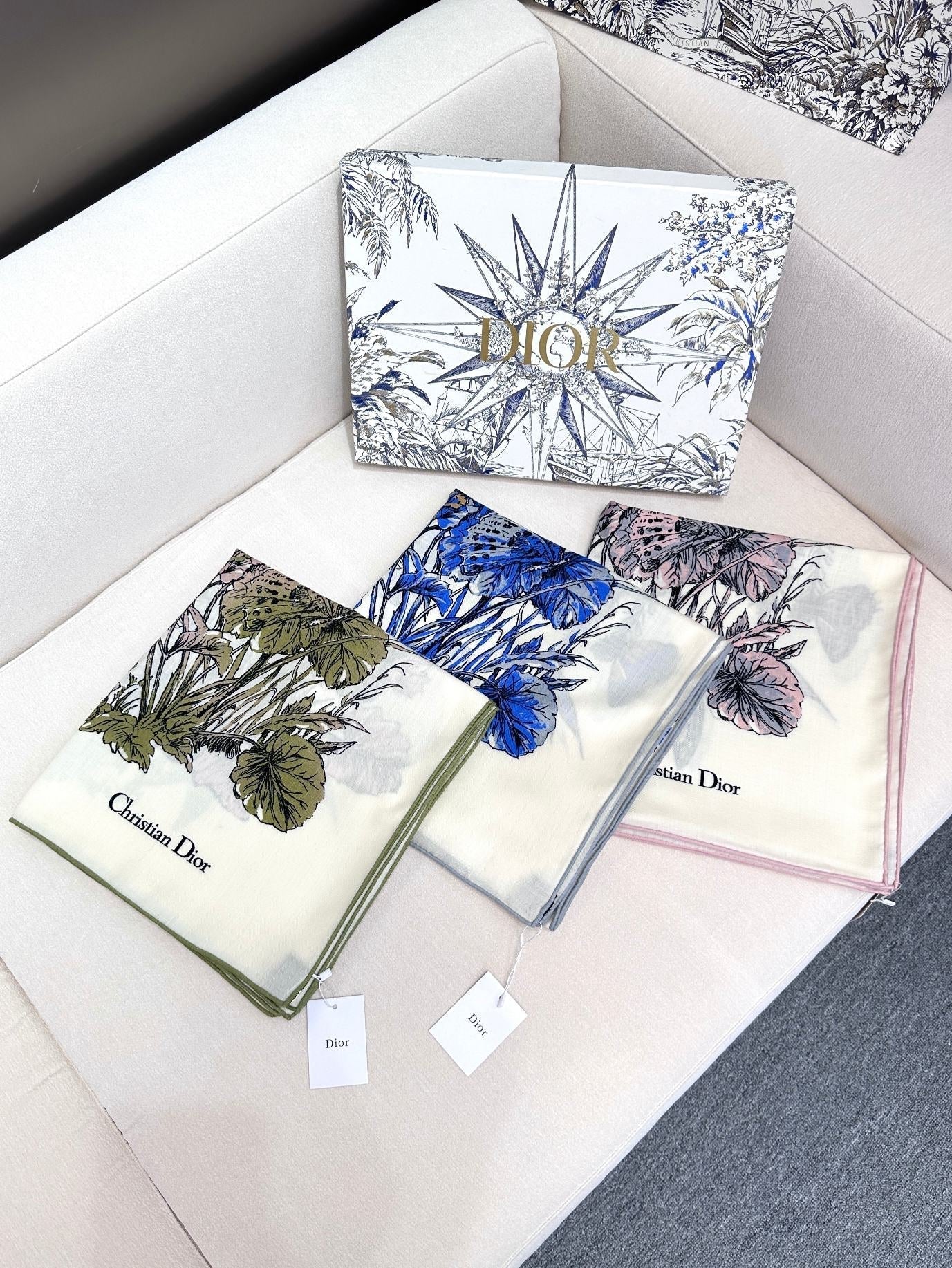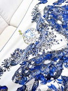 SQUARE SCARF 140 CM IN WHITE MIX COBALT BLUE CASHMERE AND SILK 390940