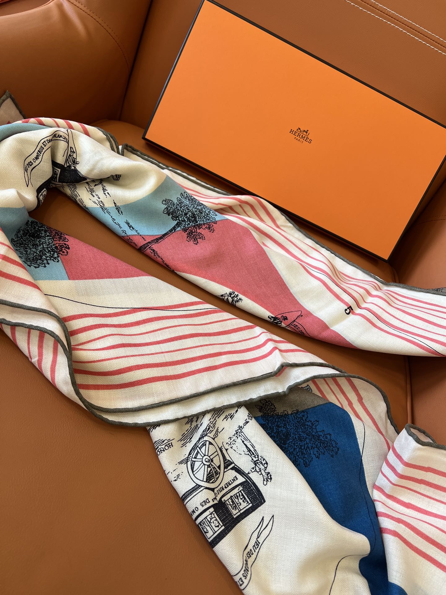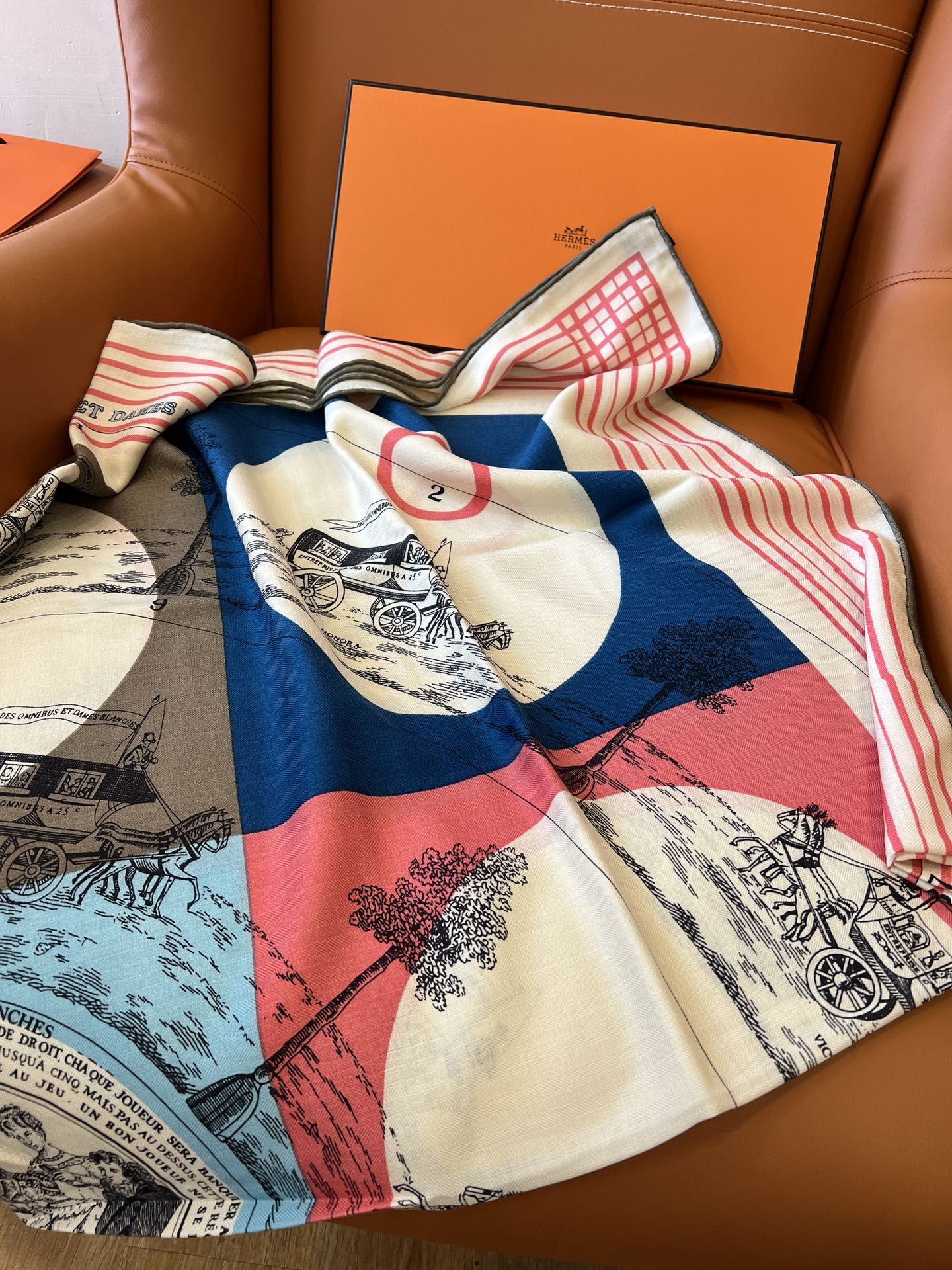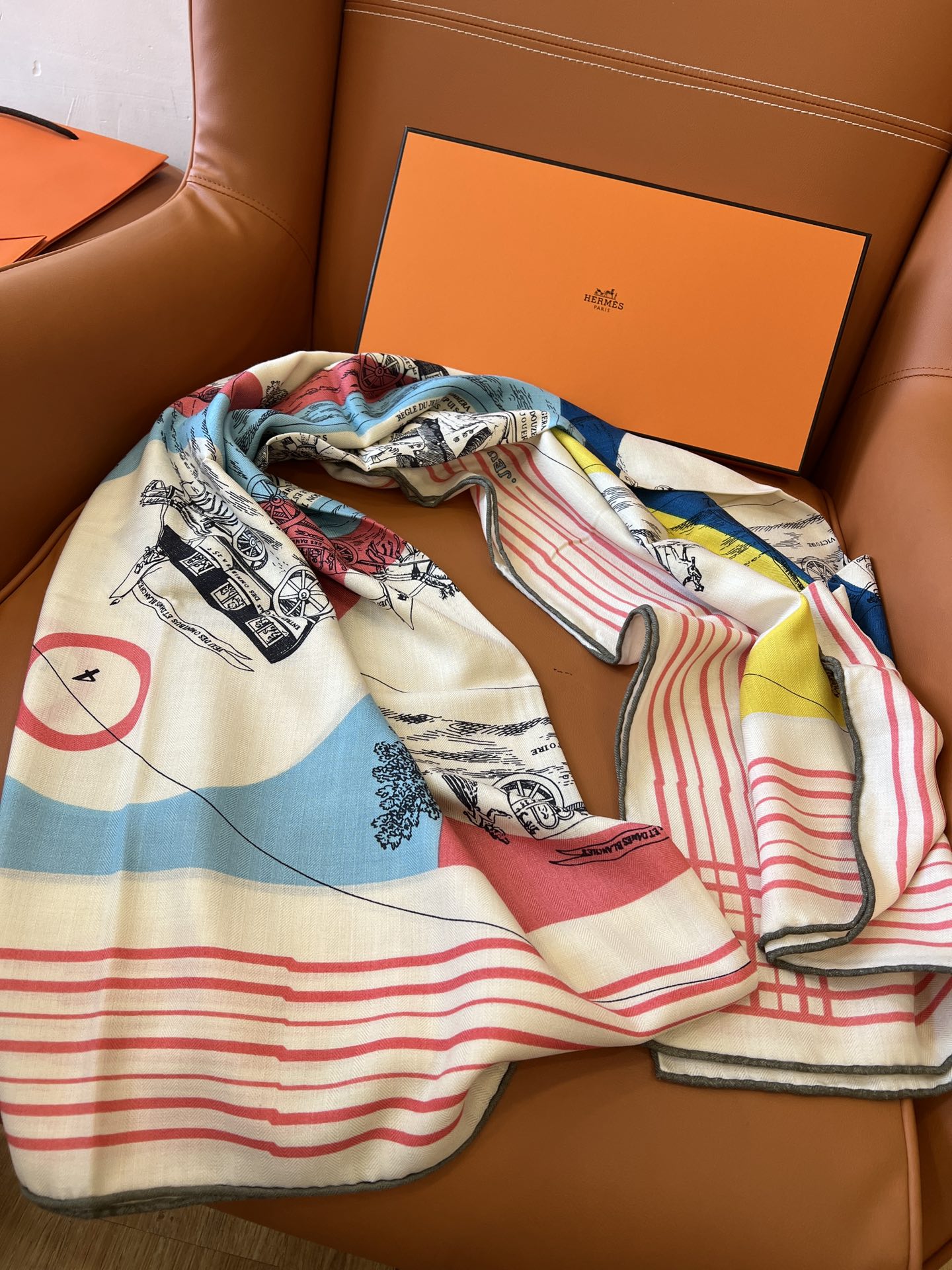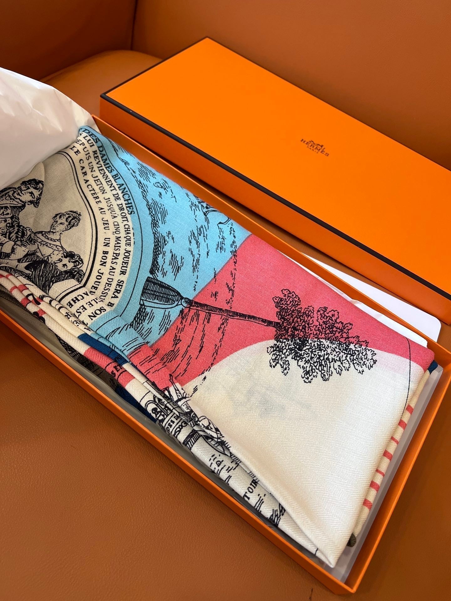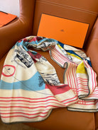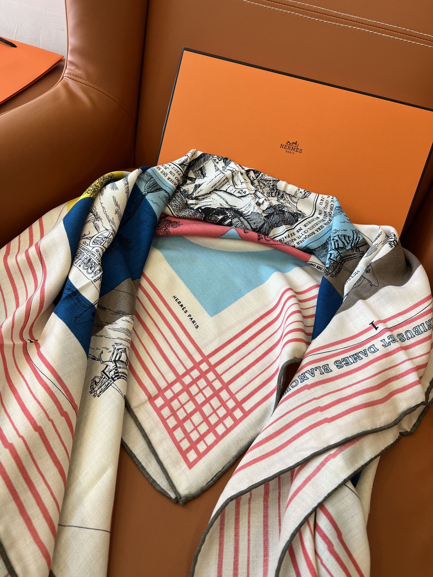 Square Scarf 140 CM In White Pink Colorful Cashmere And Silk 327520