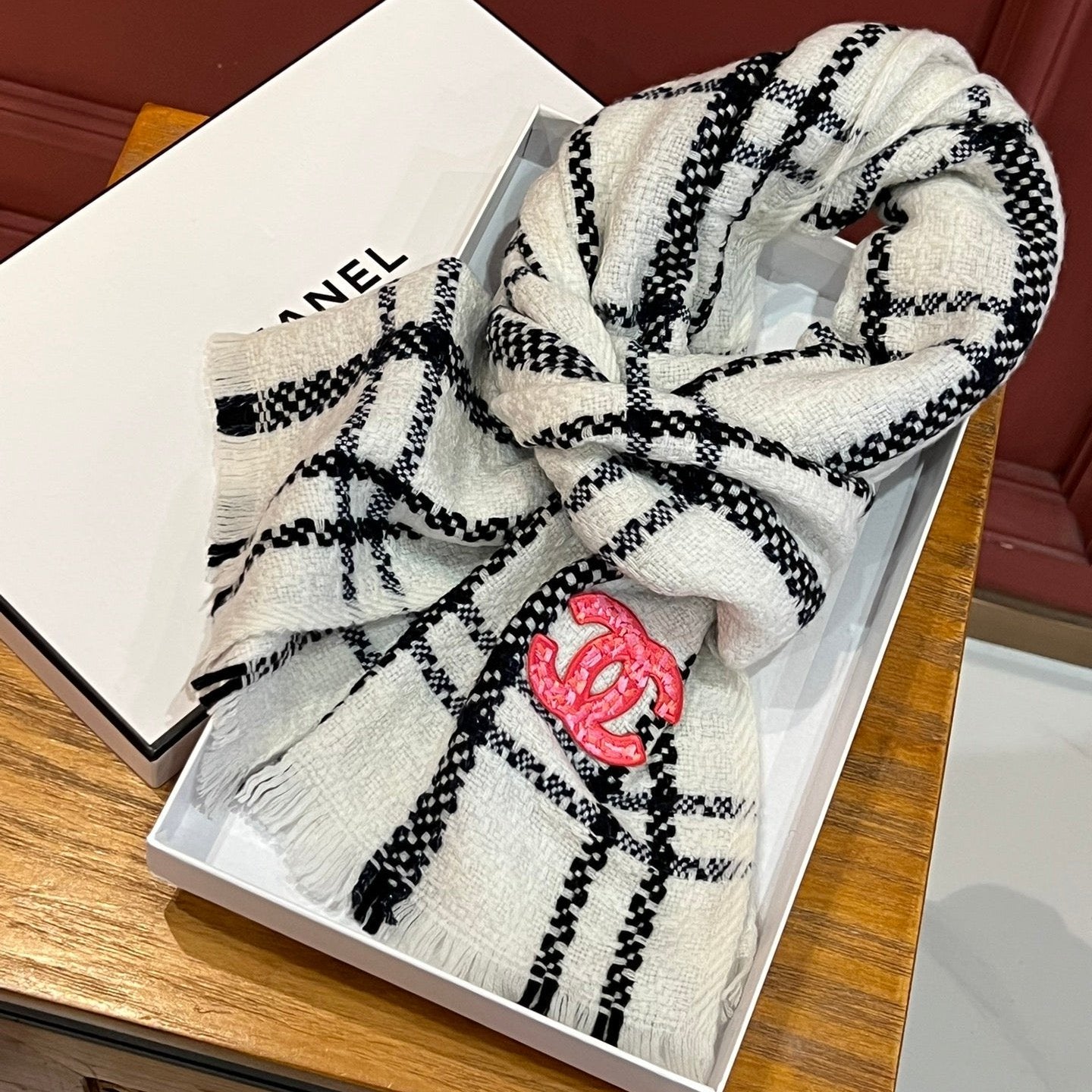 CC Scarf 195 CM White Mix Black Cashmere And Wool 418442