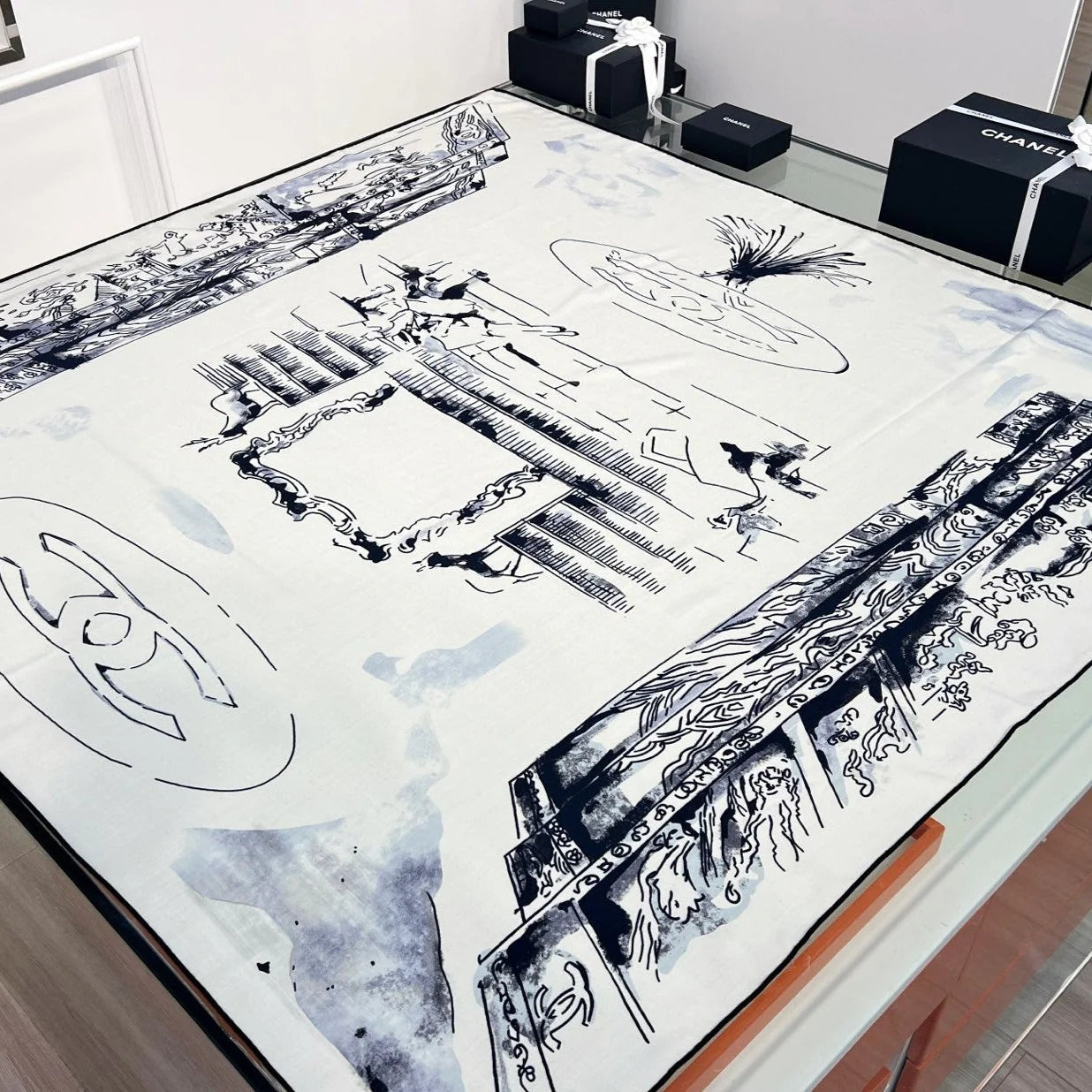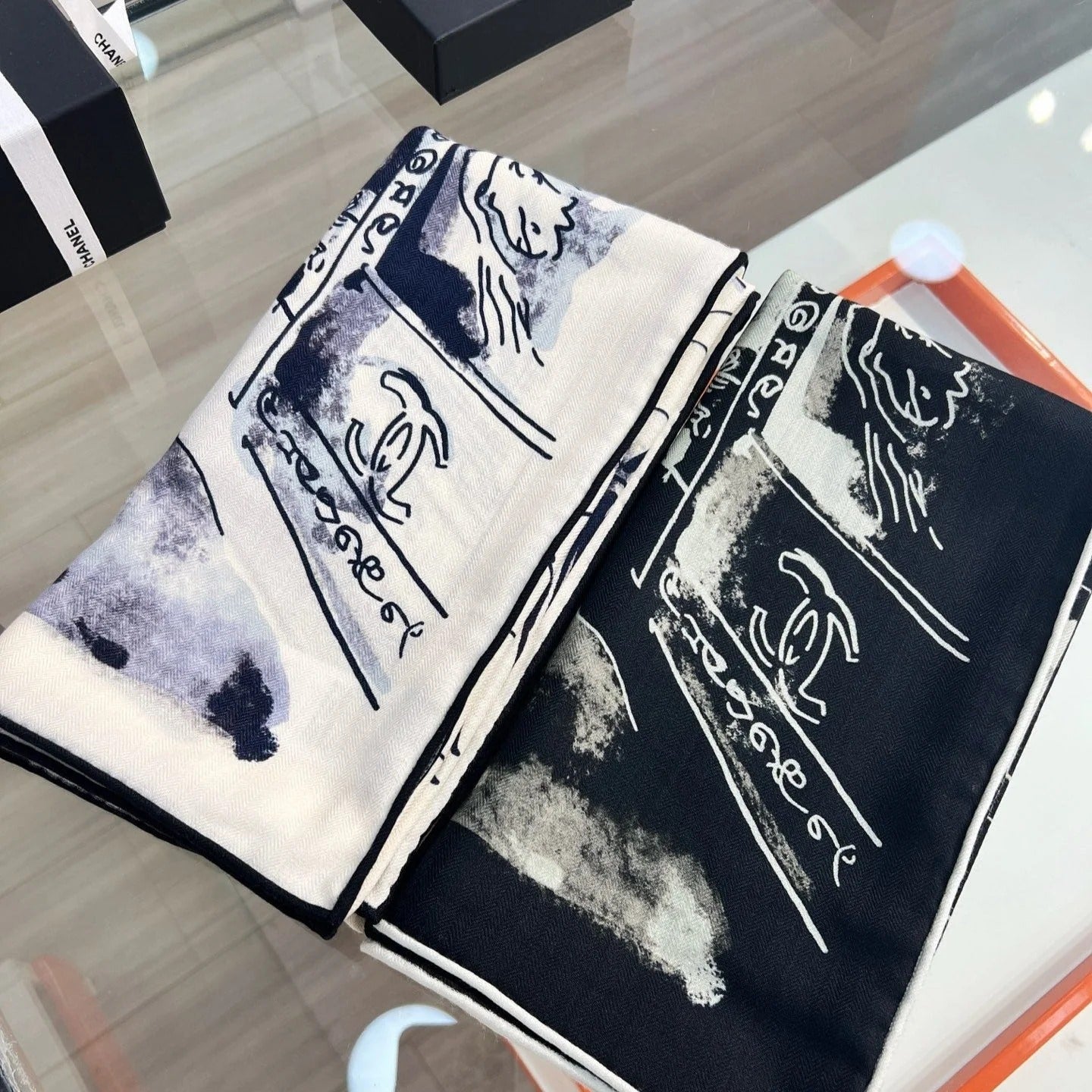 CHANEL 25S SCARF 140 IN SILK WOOL 726479
