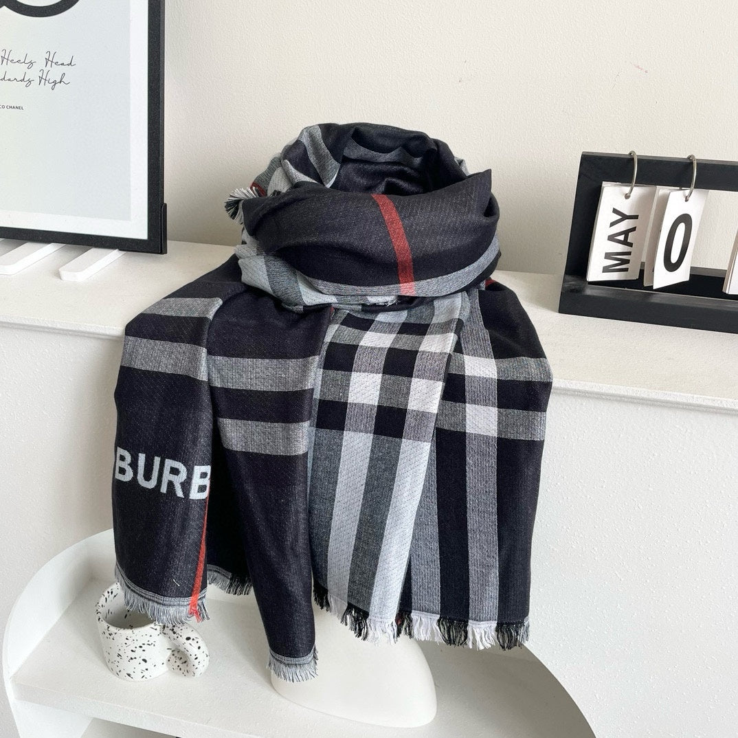 SCARF 220 CM IN BLACK MIX WHITE MONOGRAM CASHMERE AND WOOL 413658