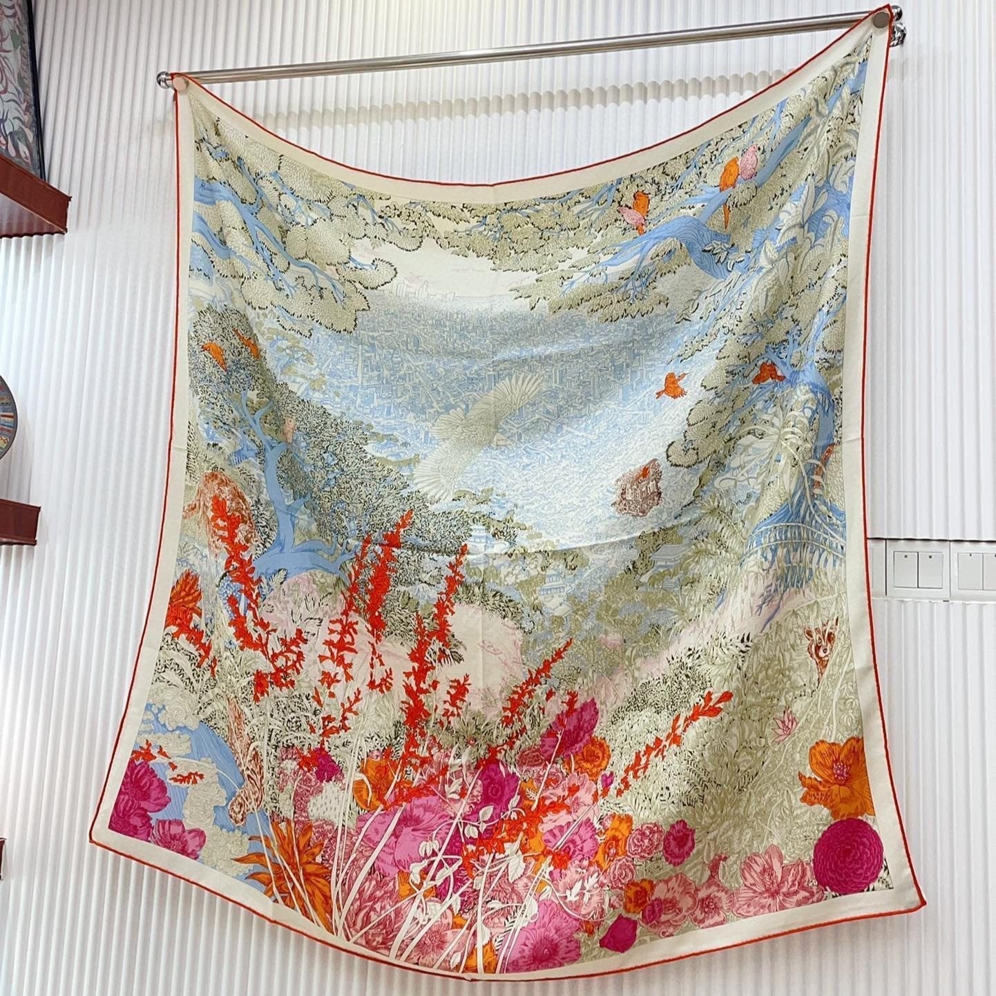 Square Scarf 140 CM White Colorful Cashmere And Silk