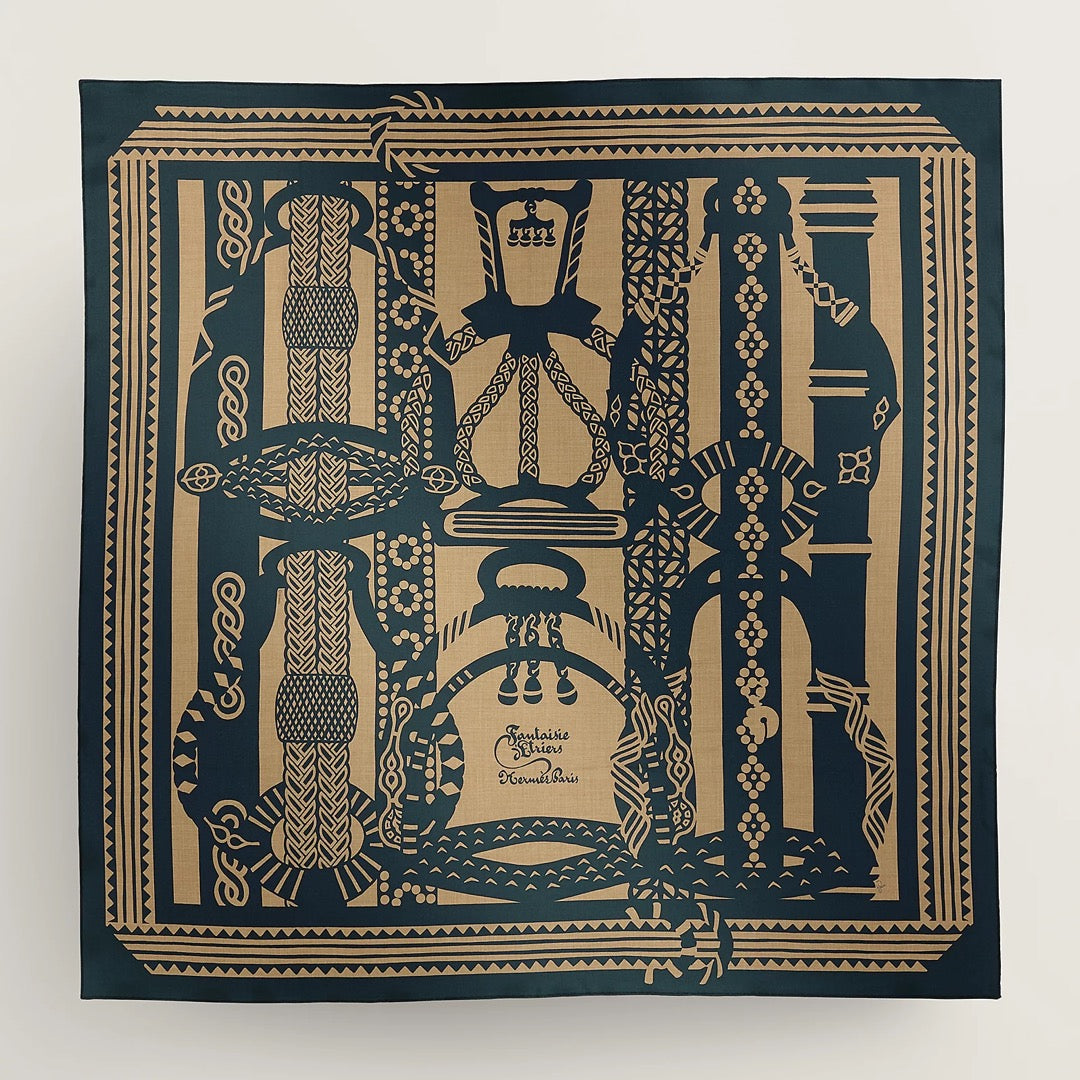 Stately Wheels Scarf 90 CM Dark Green Colorful Silk Twill 312875