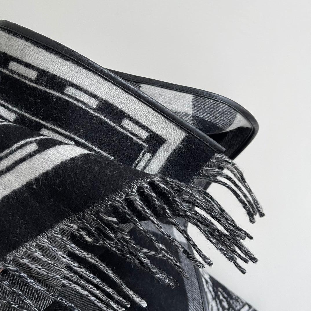 TRIANGLE EDGE SCARF 190 CM IN BLACK MIX WHITE WOOL AND CASHMERE 418535
