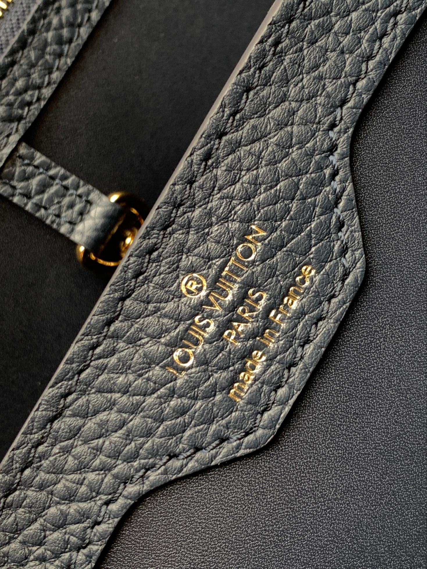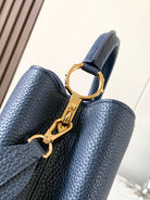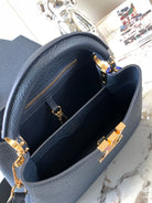capucines bb 27 midnight blue taurillon leather gold hardware