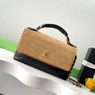 CC 25A Flap Bag 29cm Beige Suede Black Calfskin
