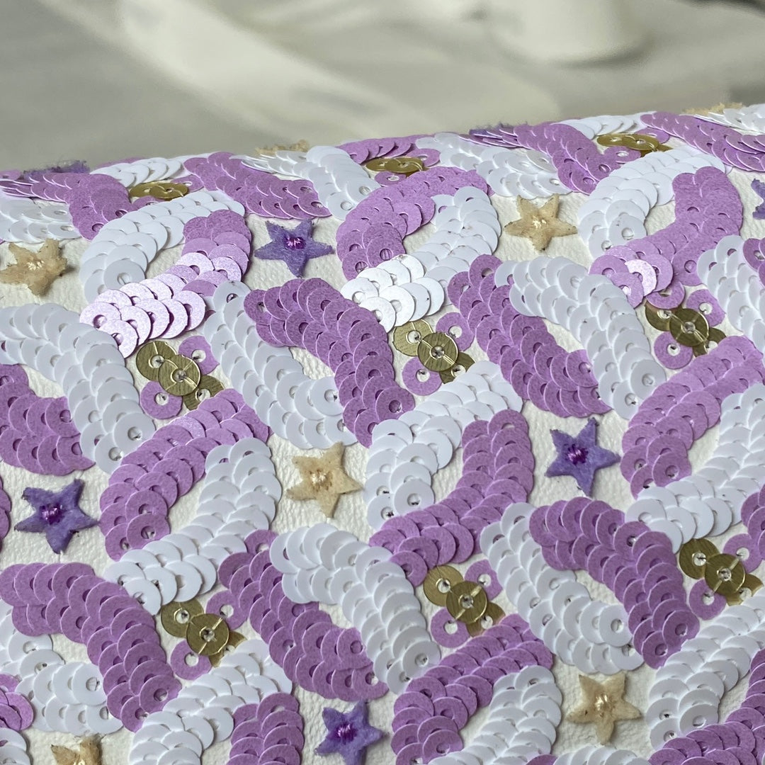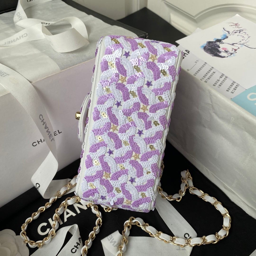 CC CLASSIC 17 FLAP BAG IN LIGHT PURPLE EMBROIDERED SATIN SEQUINS