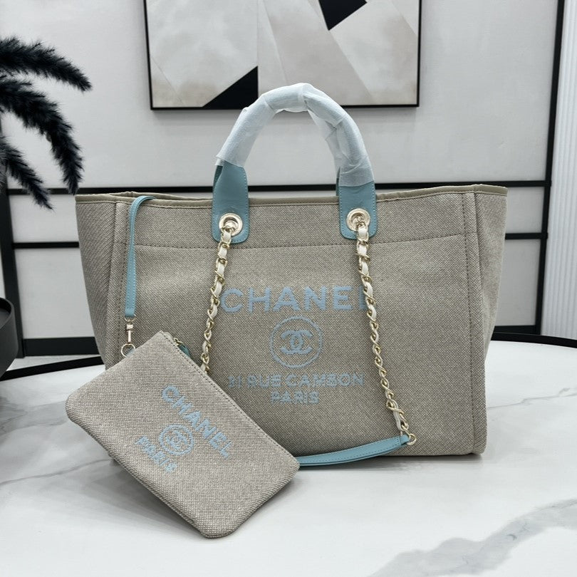 CC Deauville Tweed Bag Blue Sky Leather Gold Hardware 31