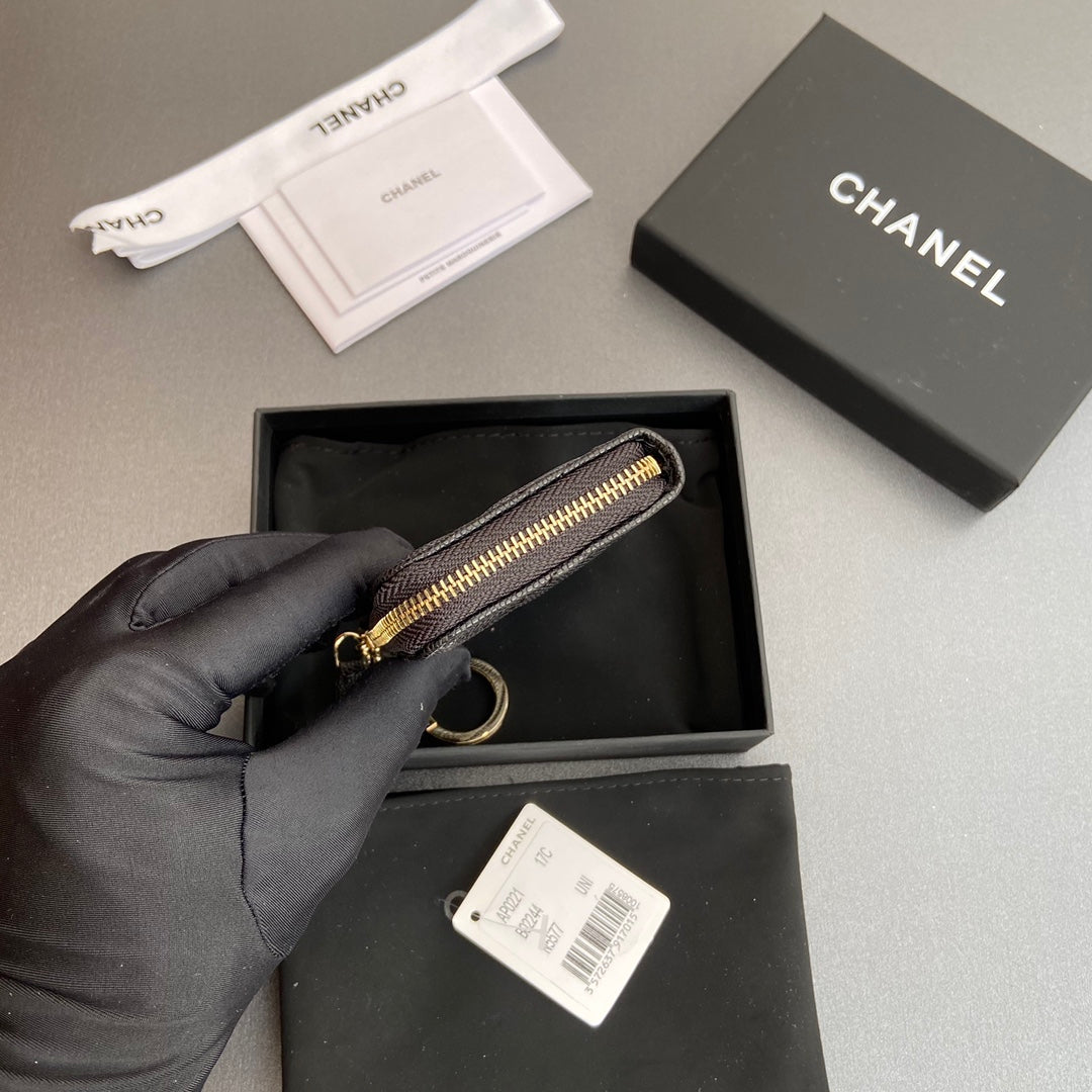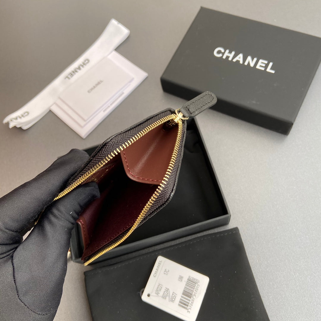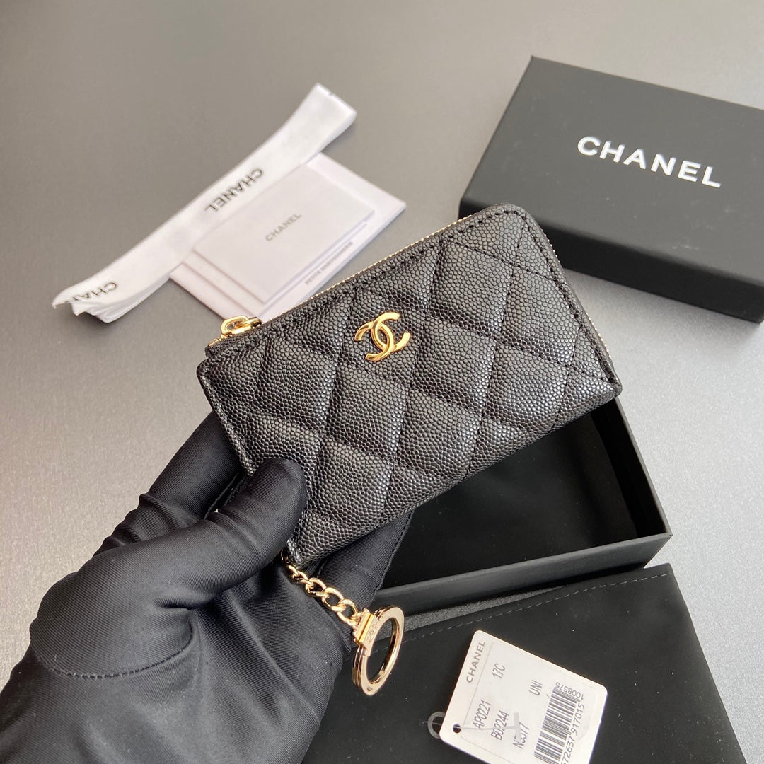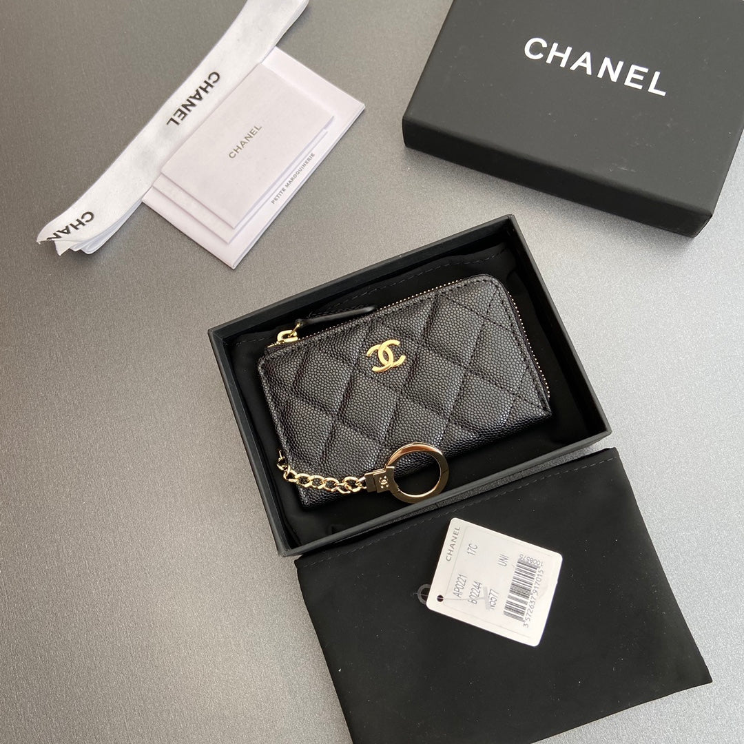 CC Hook & Chain Zipper Card Holder Black Caviar GHW 234733