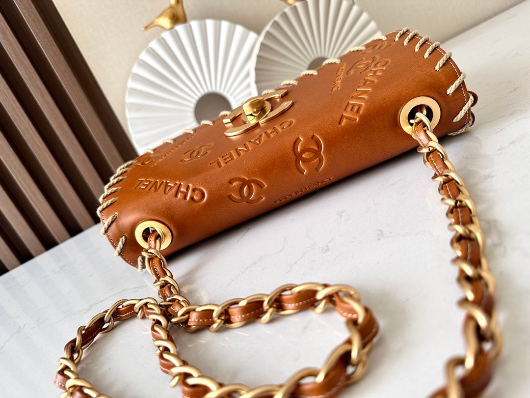 CC Western Jumbo Flap Bag 25cm Light Brown Leather