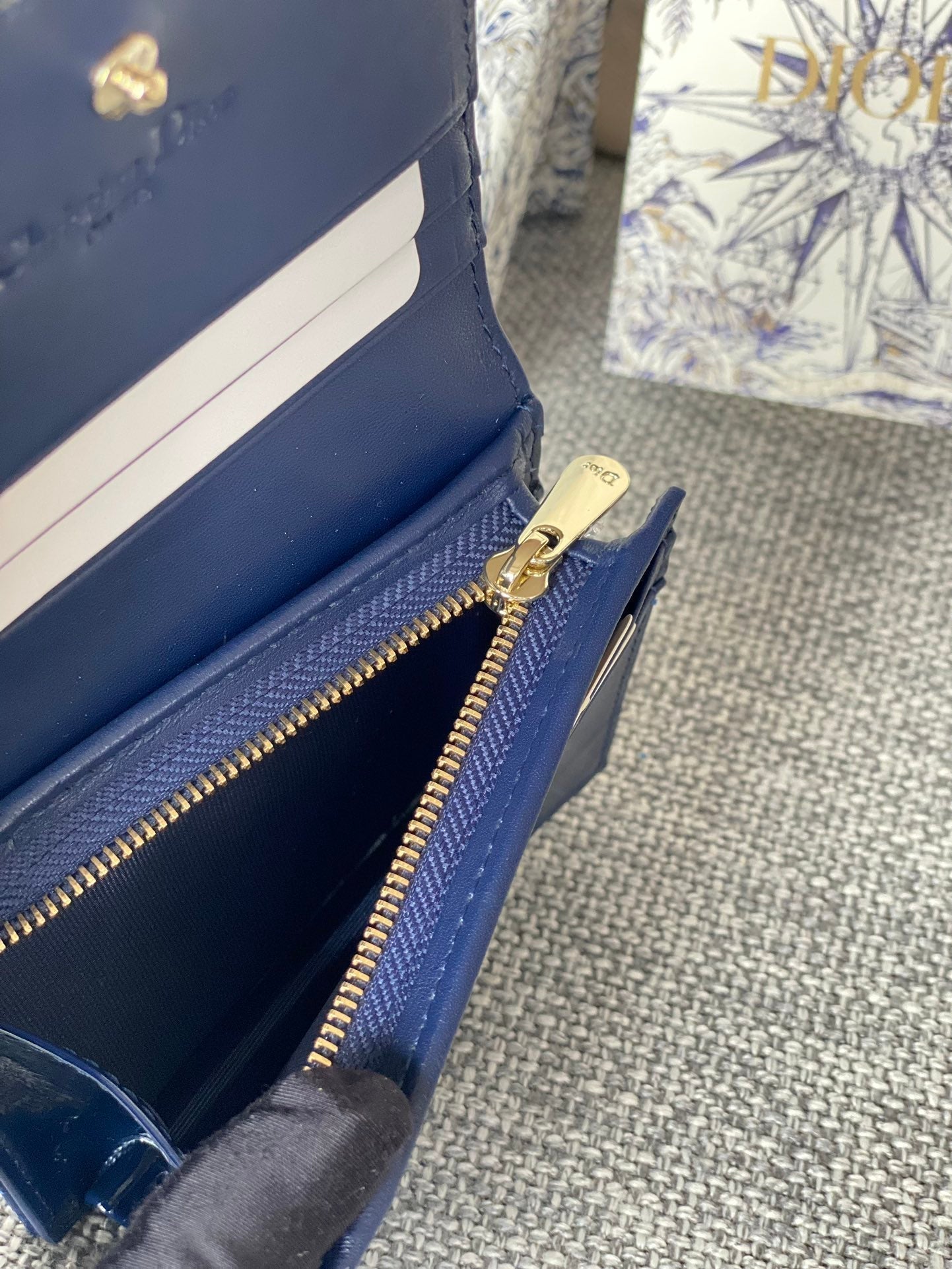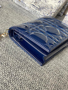 CD Caro 11cm Compact Wallet Shiny Blue Calfskin