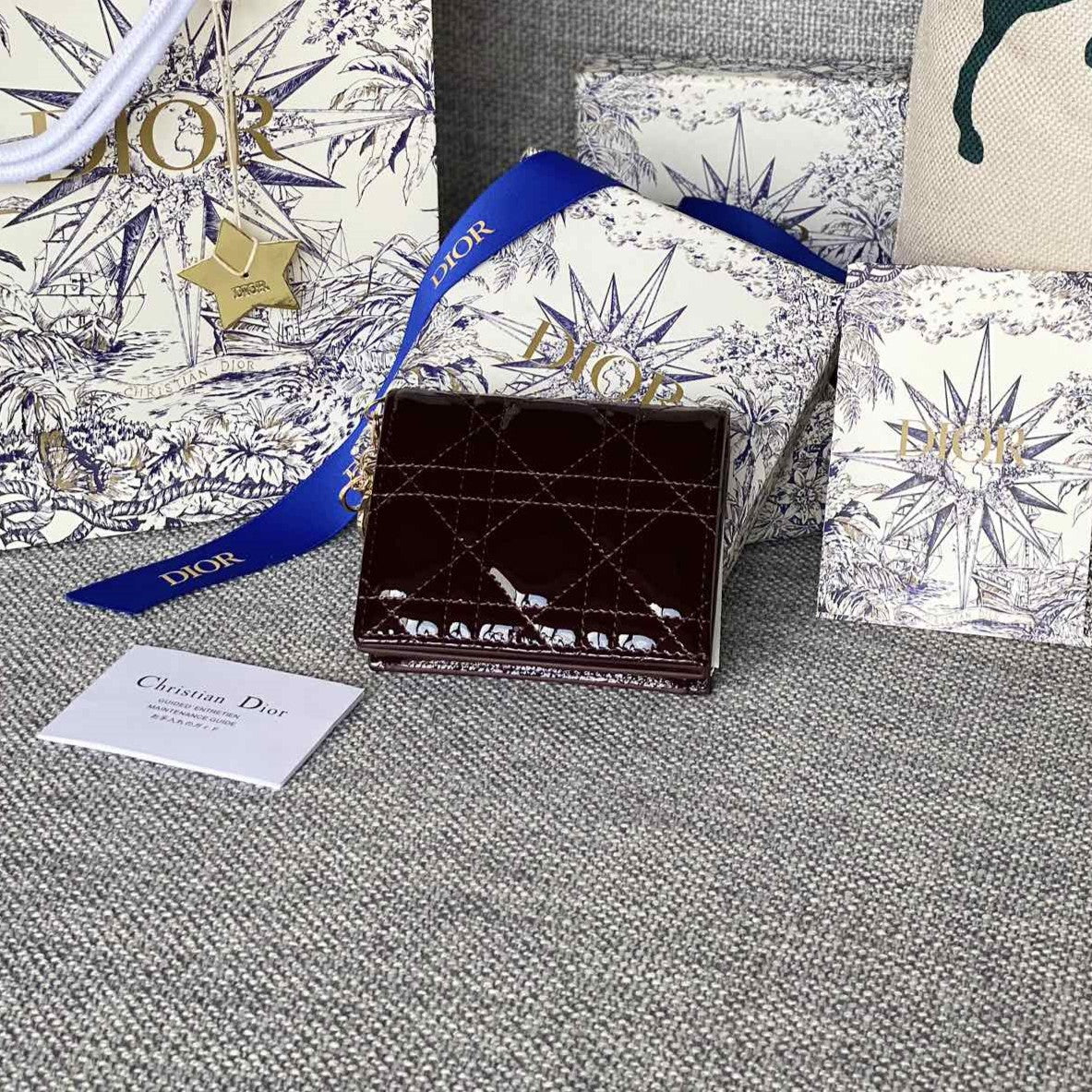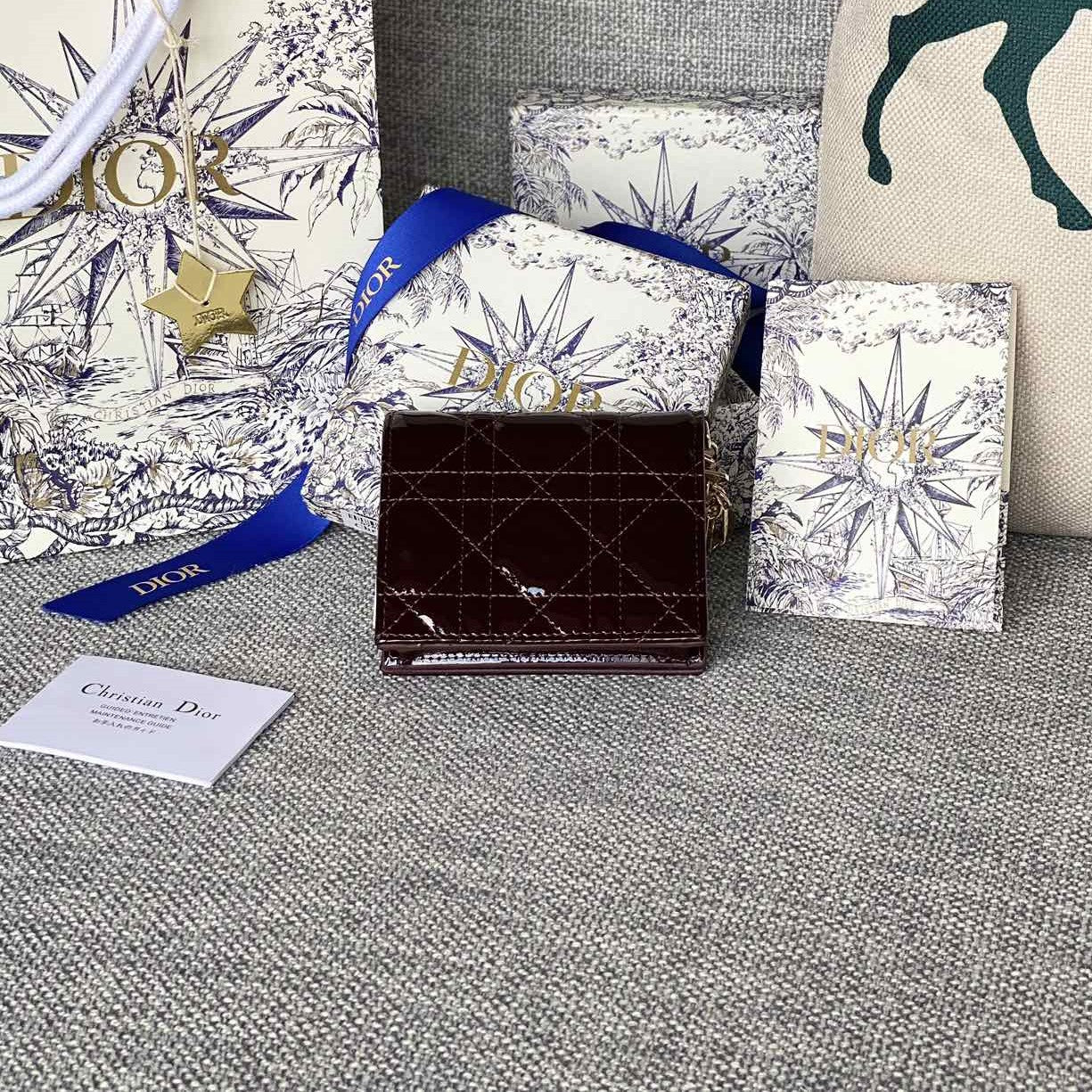 CD Caro 11cm Compact Wallet Shiny Burgundy Calfskin