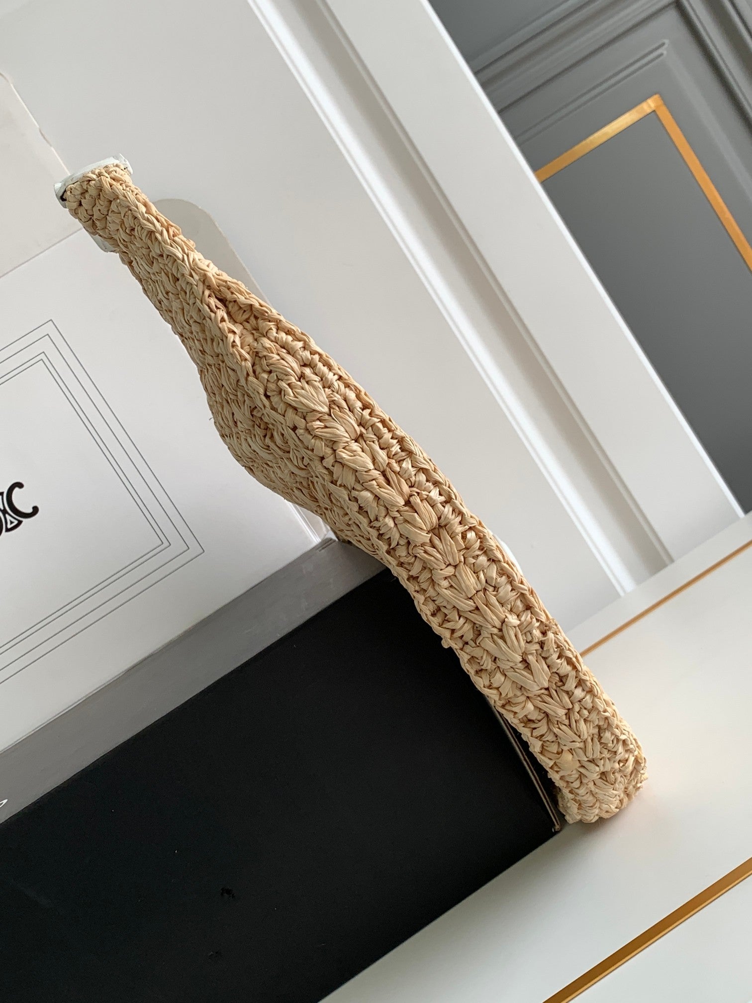 celin classic panier 33cm hobo bag raffia and white calfskin