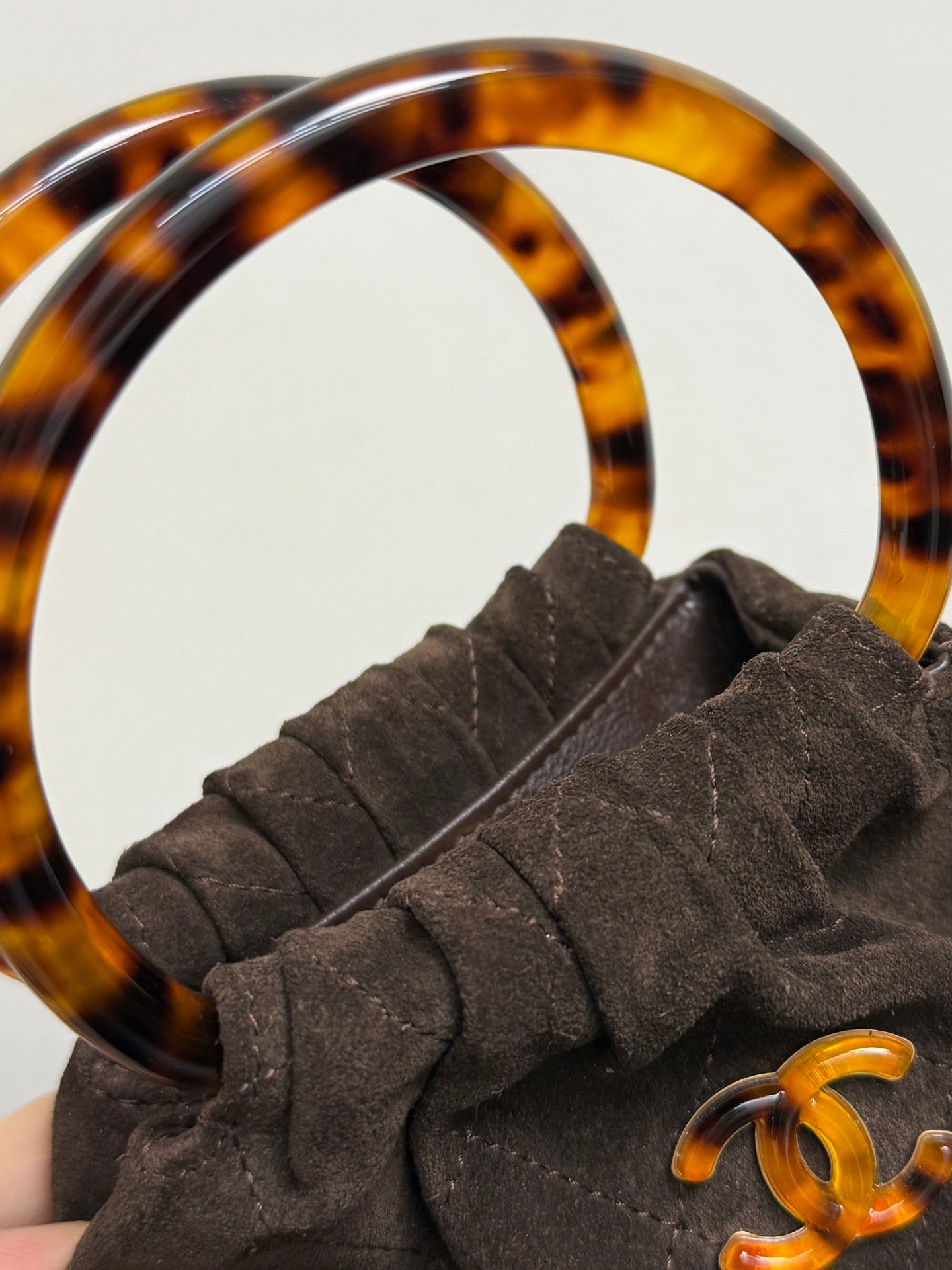 Chanel 2026 Pouch 24cm Brown Tortoiseshell Suede Effect Plexi