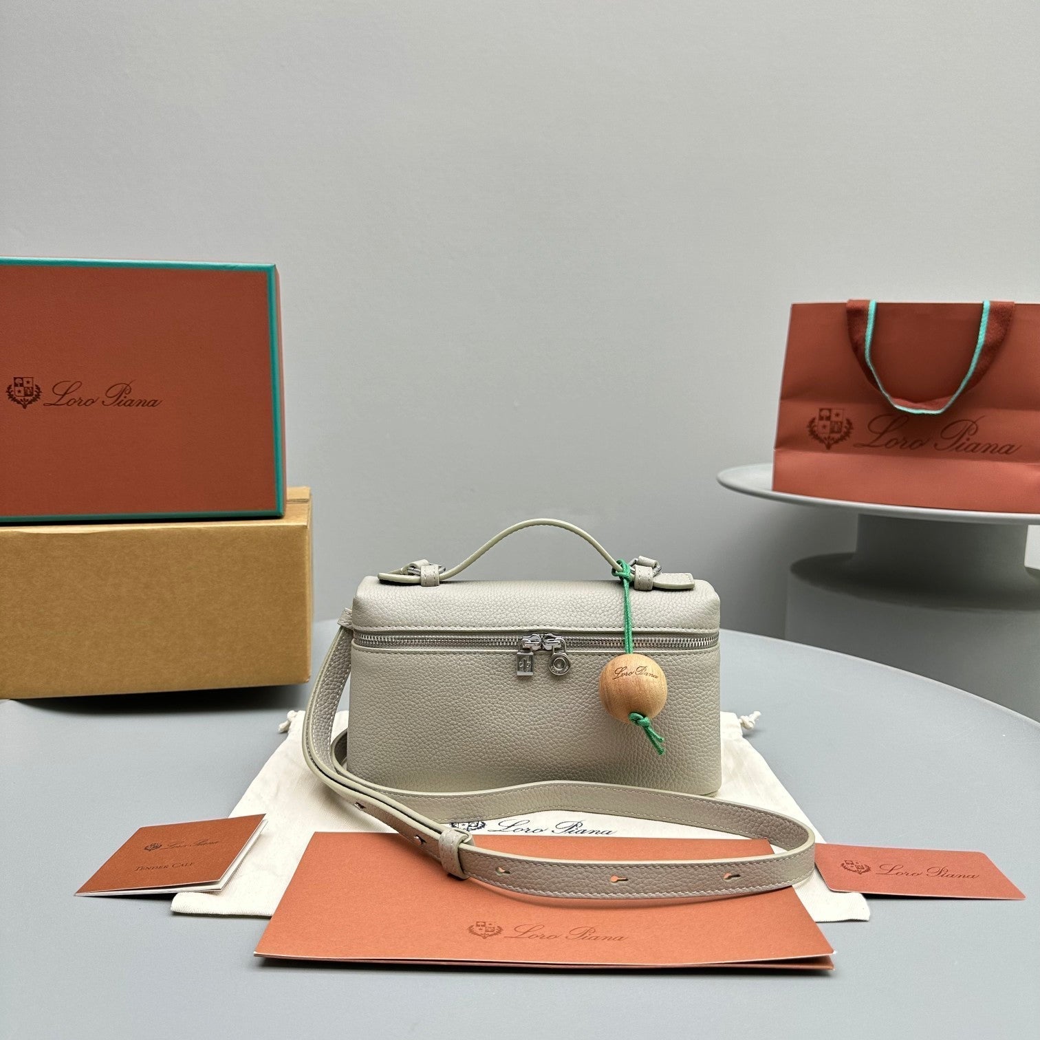 - Leather handle and shoulder strap