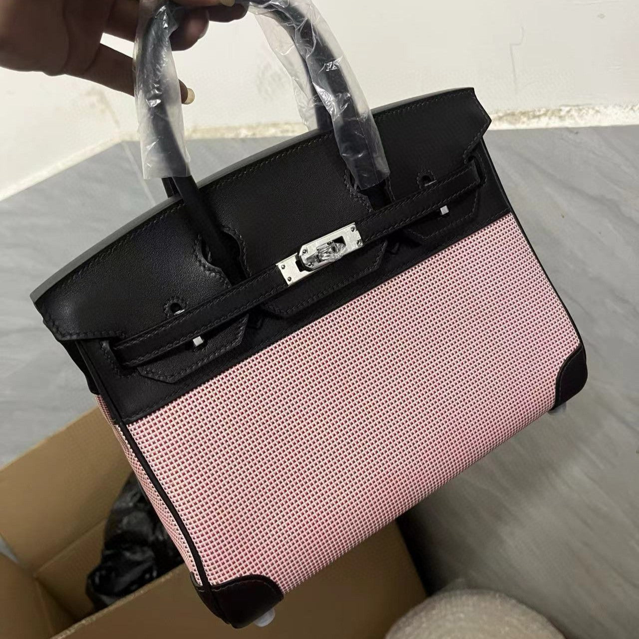 HM Birkin Black Swift Cowhide With Waffle Pink Canvas Fabric Shw (Need 25 days to prepare goods)
