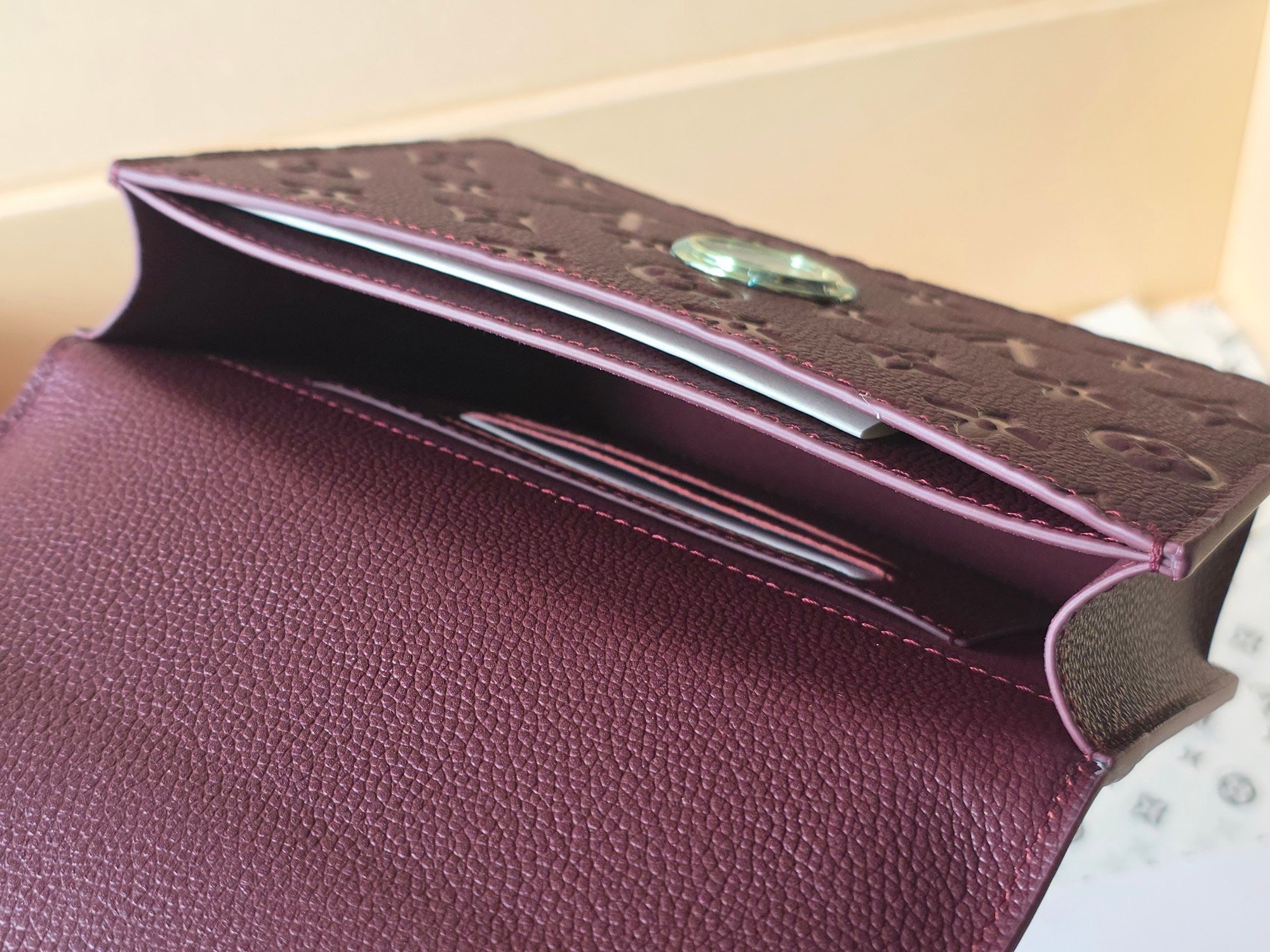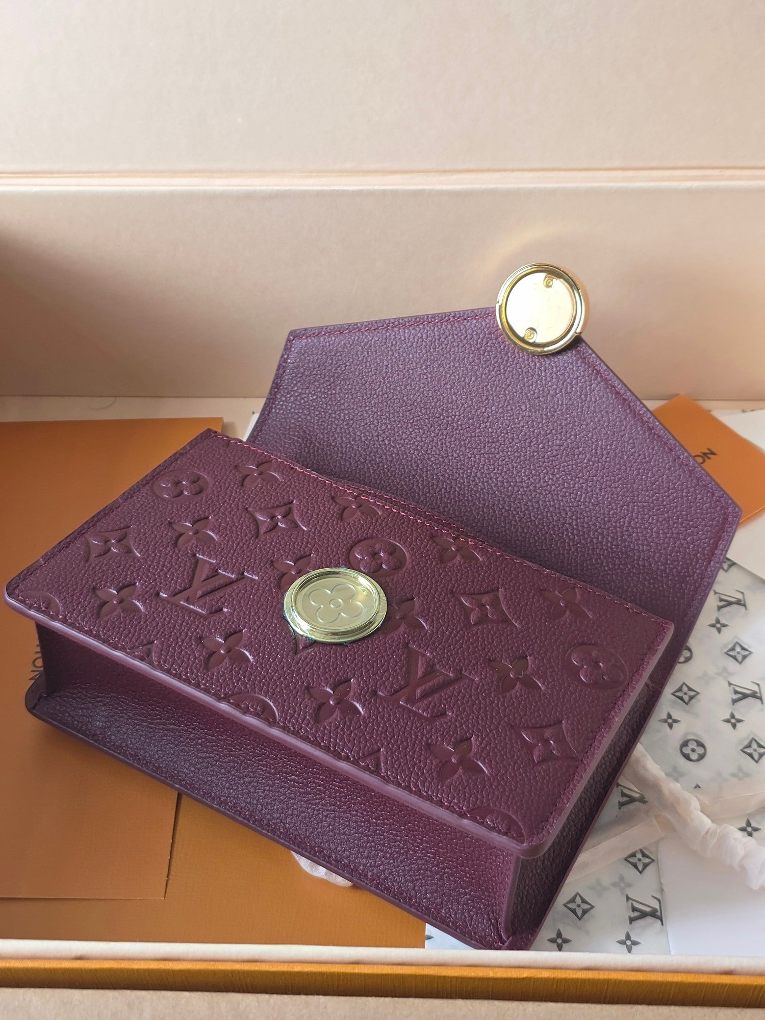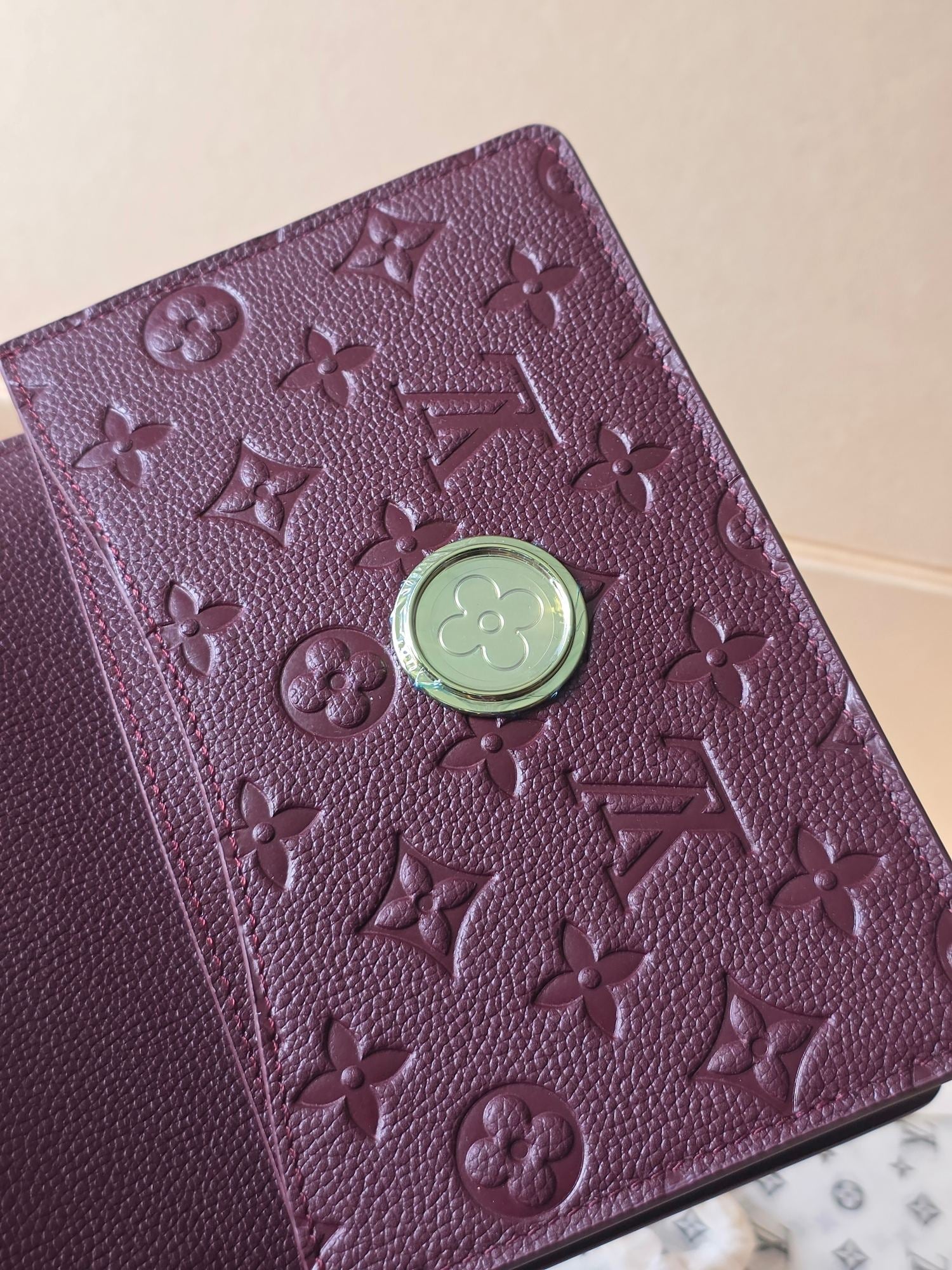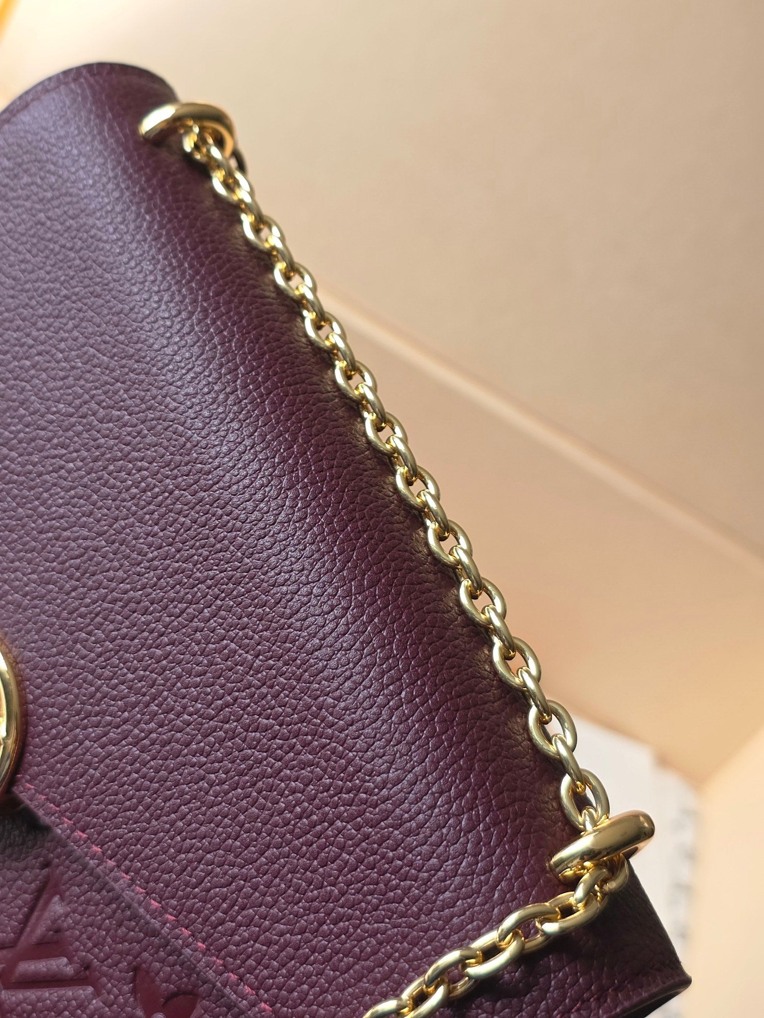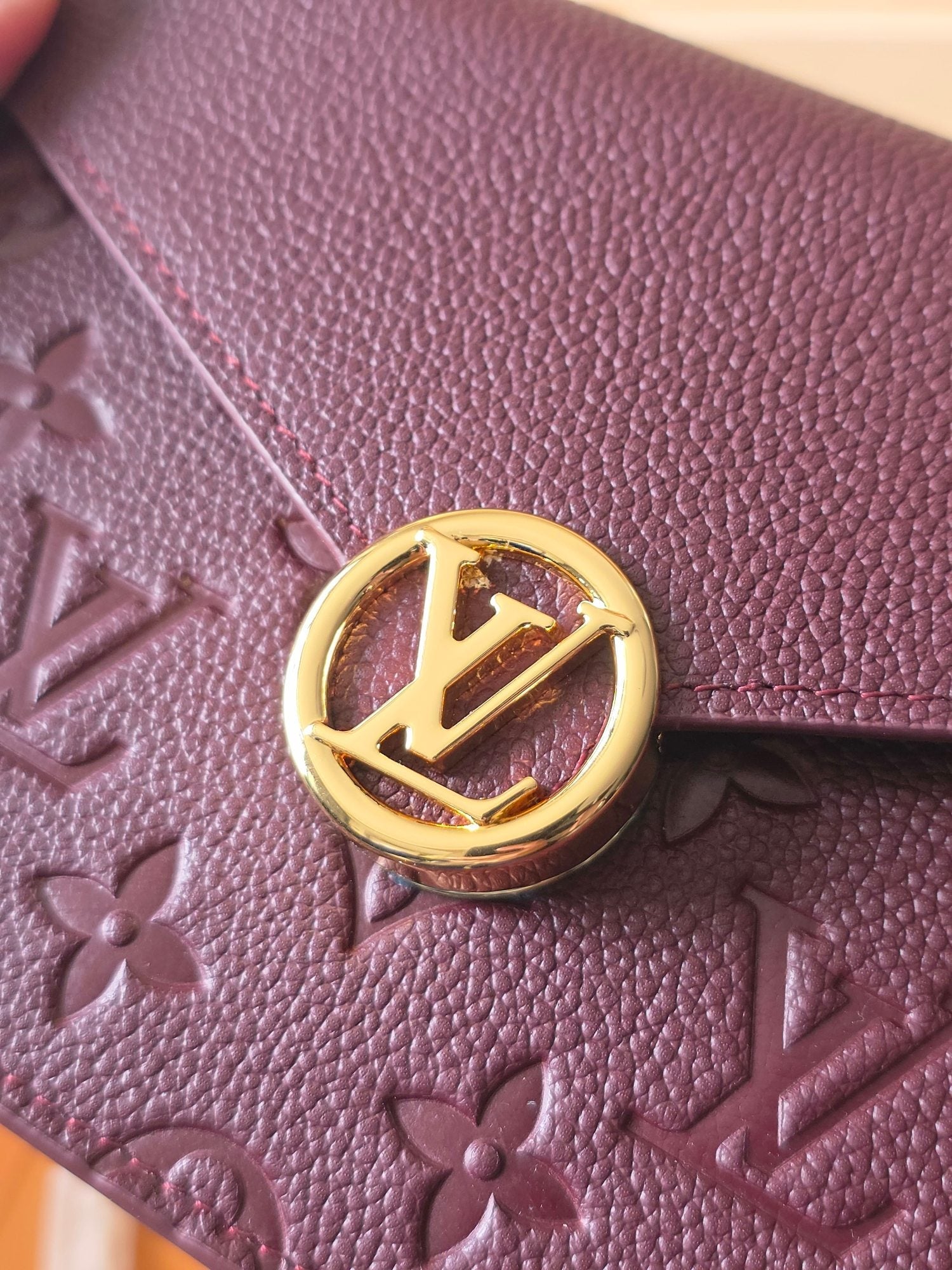LV Wallet On Chain Rosy Grenat Red Embossed Grained Cowhide Leather