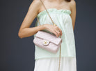 MINI RECTANGLE FLAP BAG 20CM LIGHT PINK LAMBSKIN GOLD HARDWARE