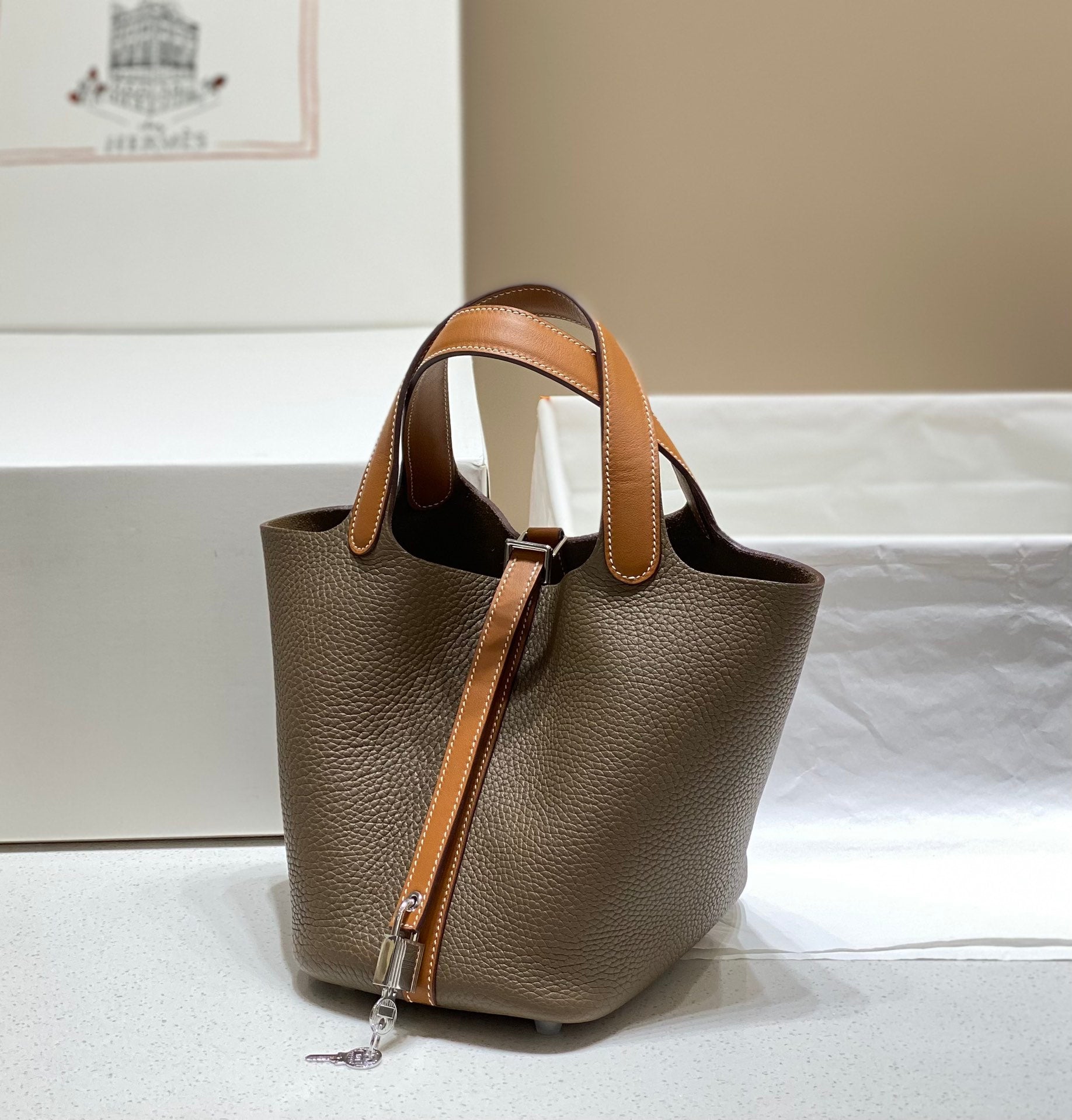 picotin lock 18 etoupe gold togo shw