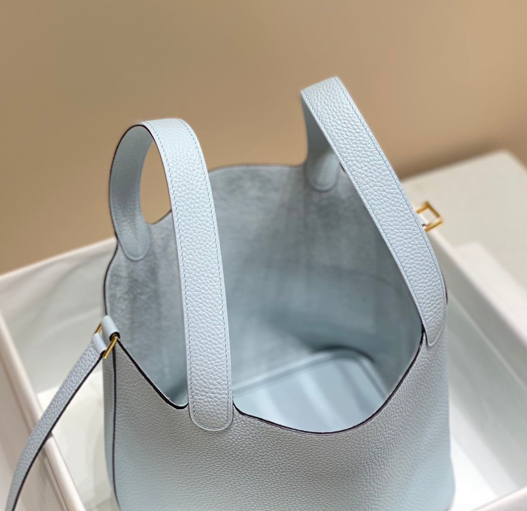 - Color: light blue color, gold hardware