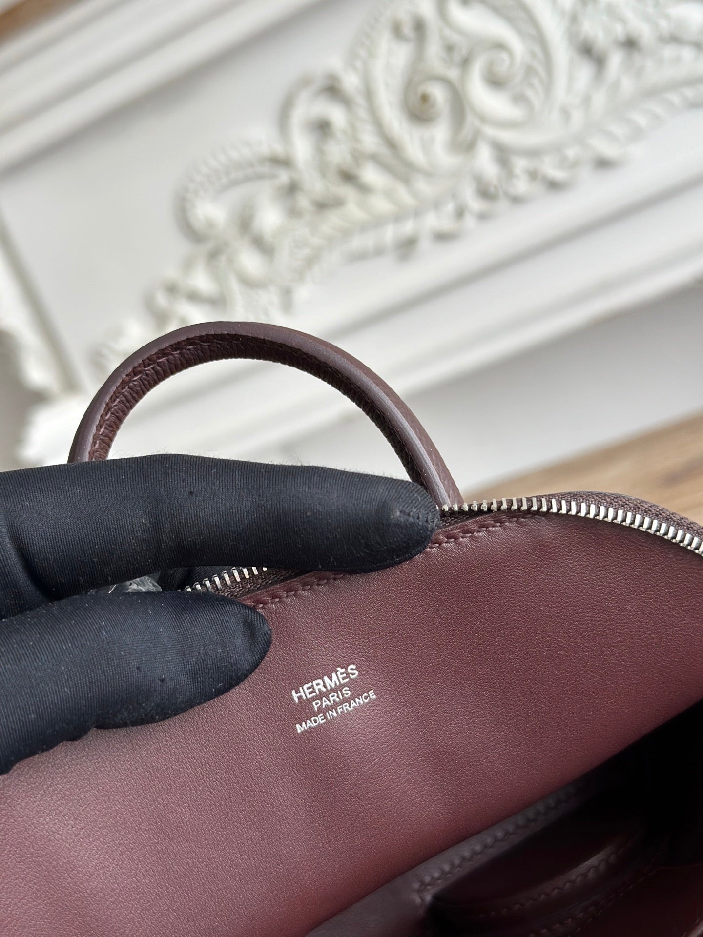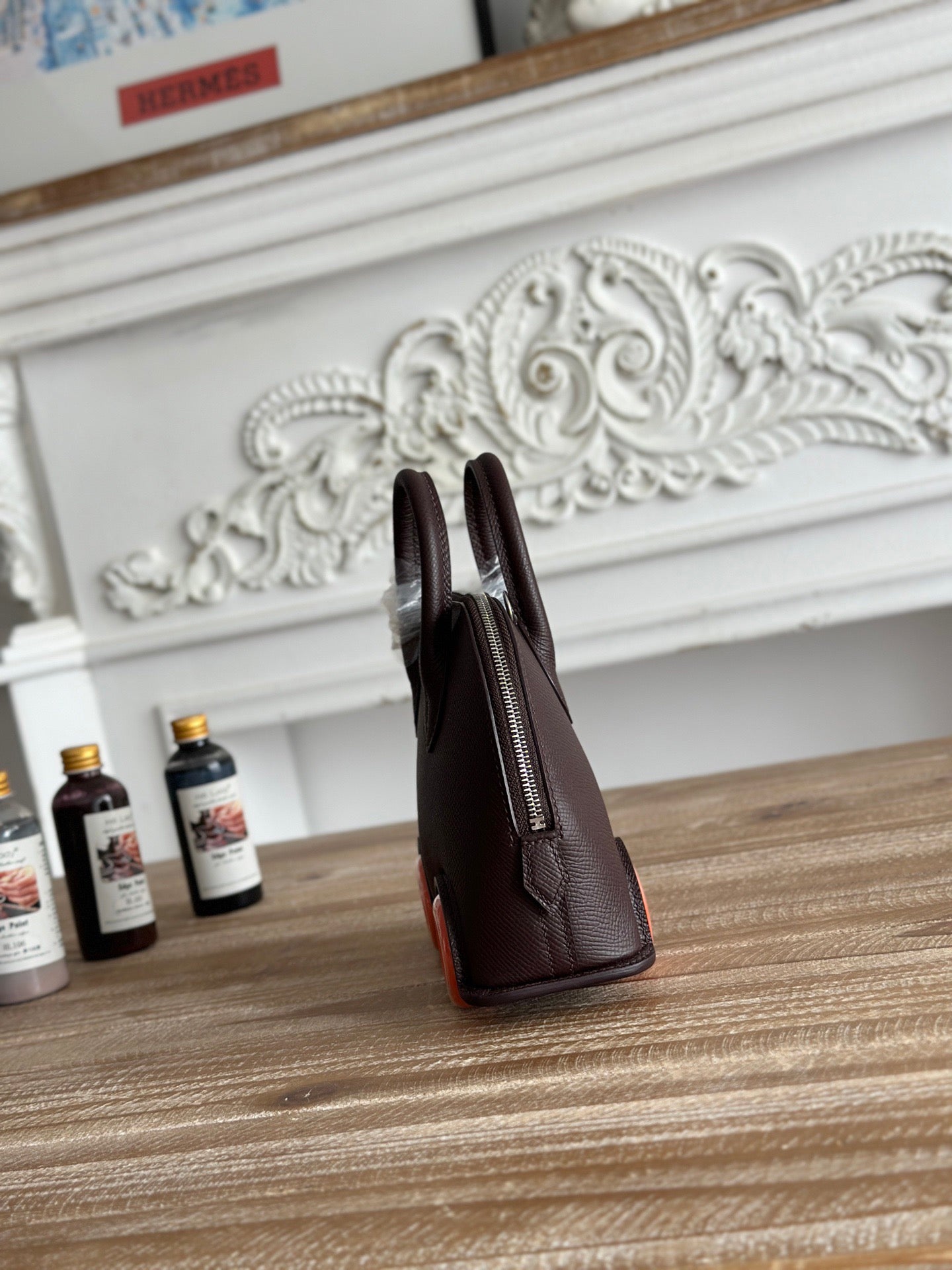 HM Bolide Mini 19cm Burgundy Epsom Leather on Orange Wheels