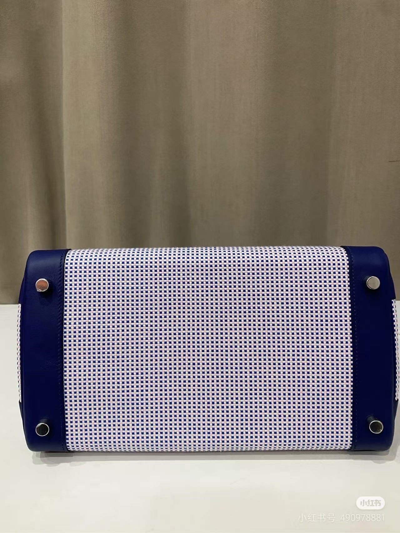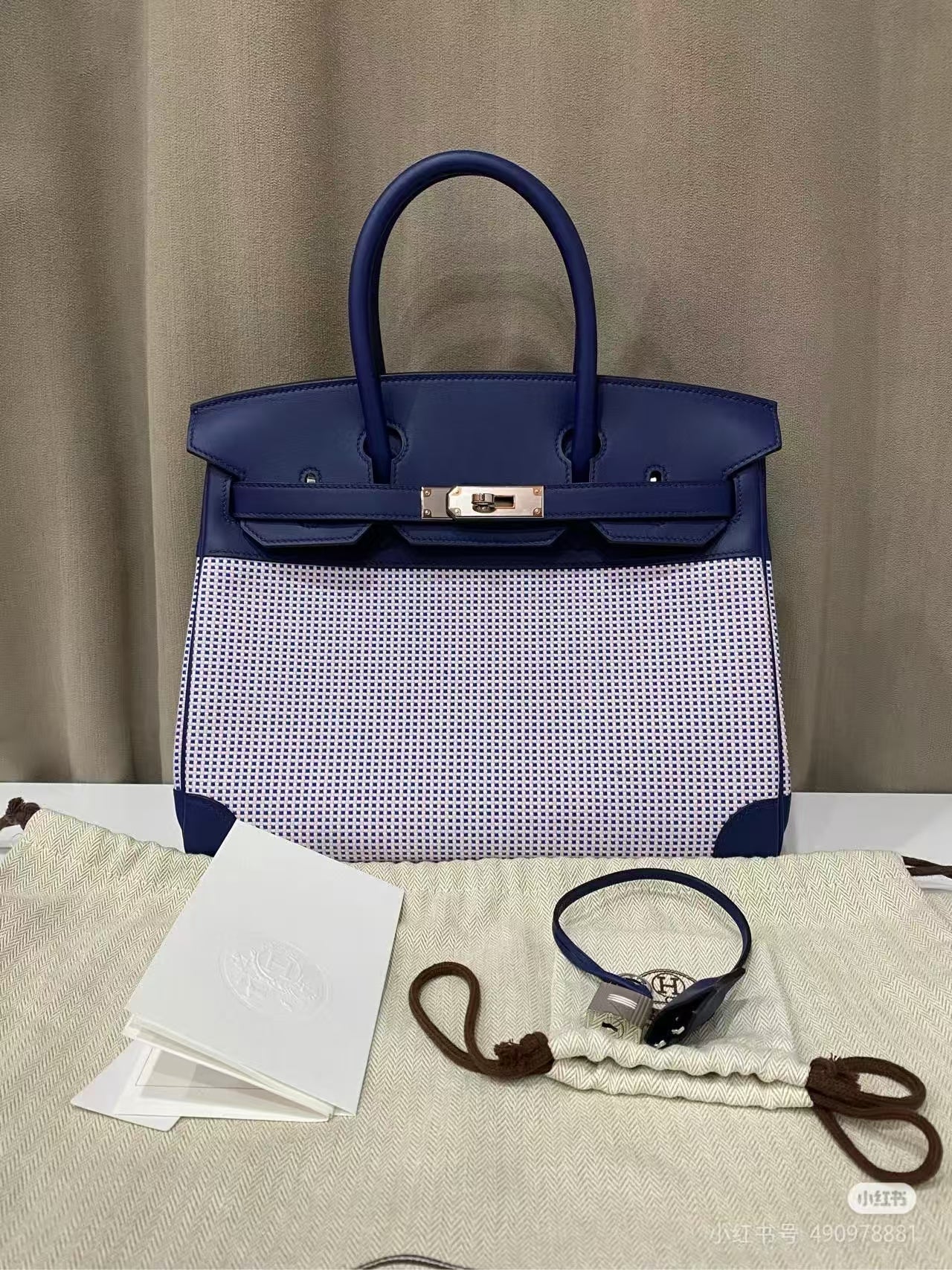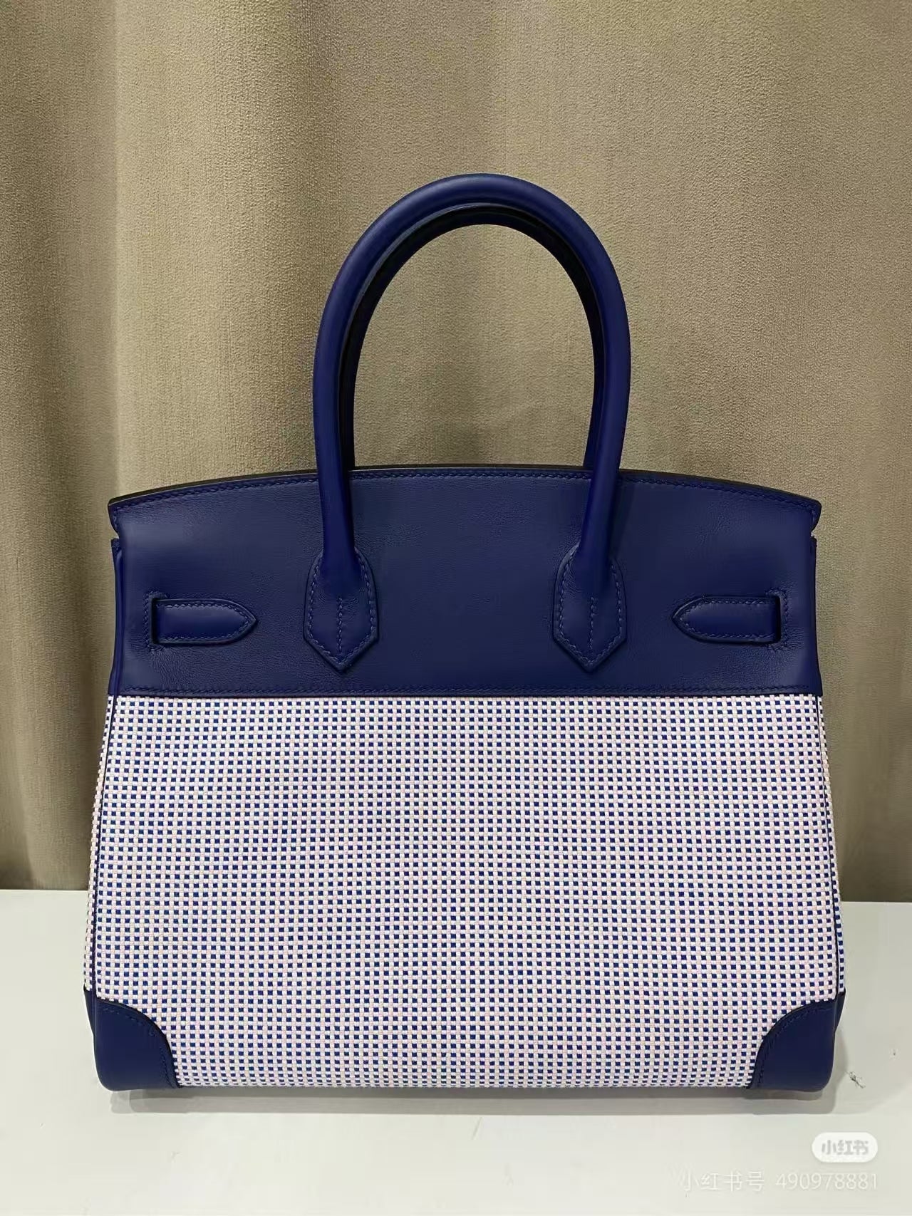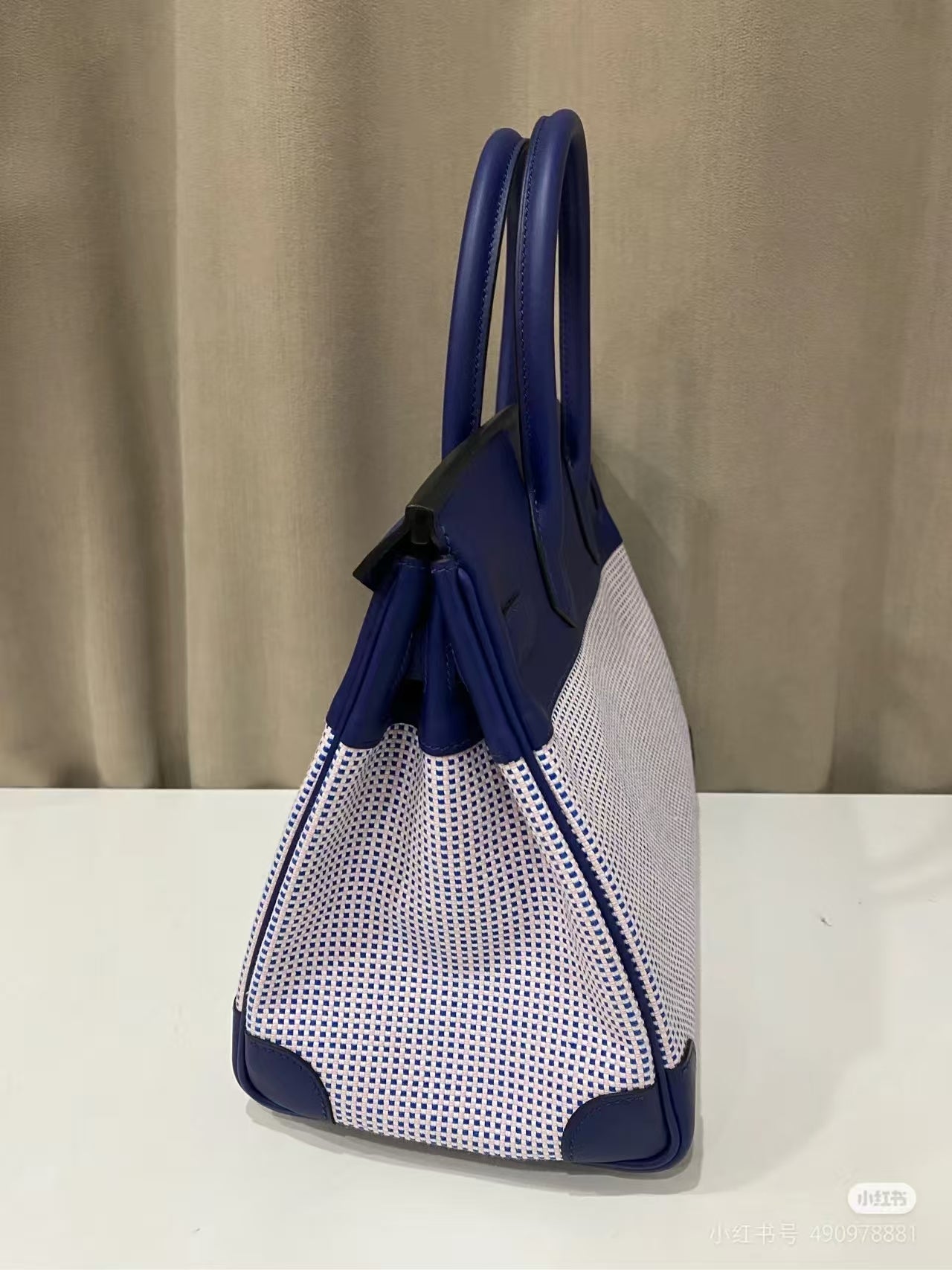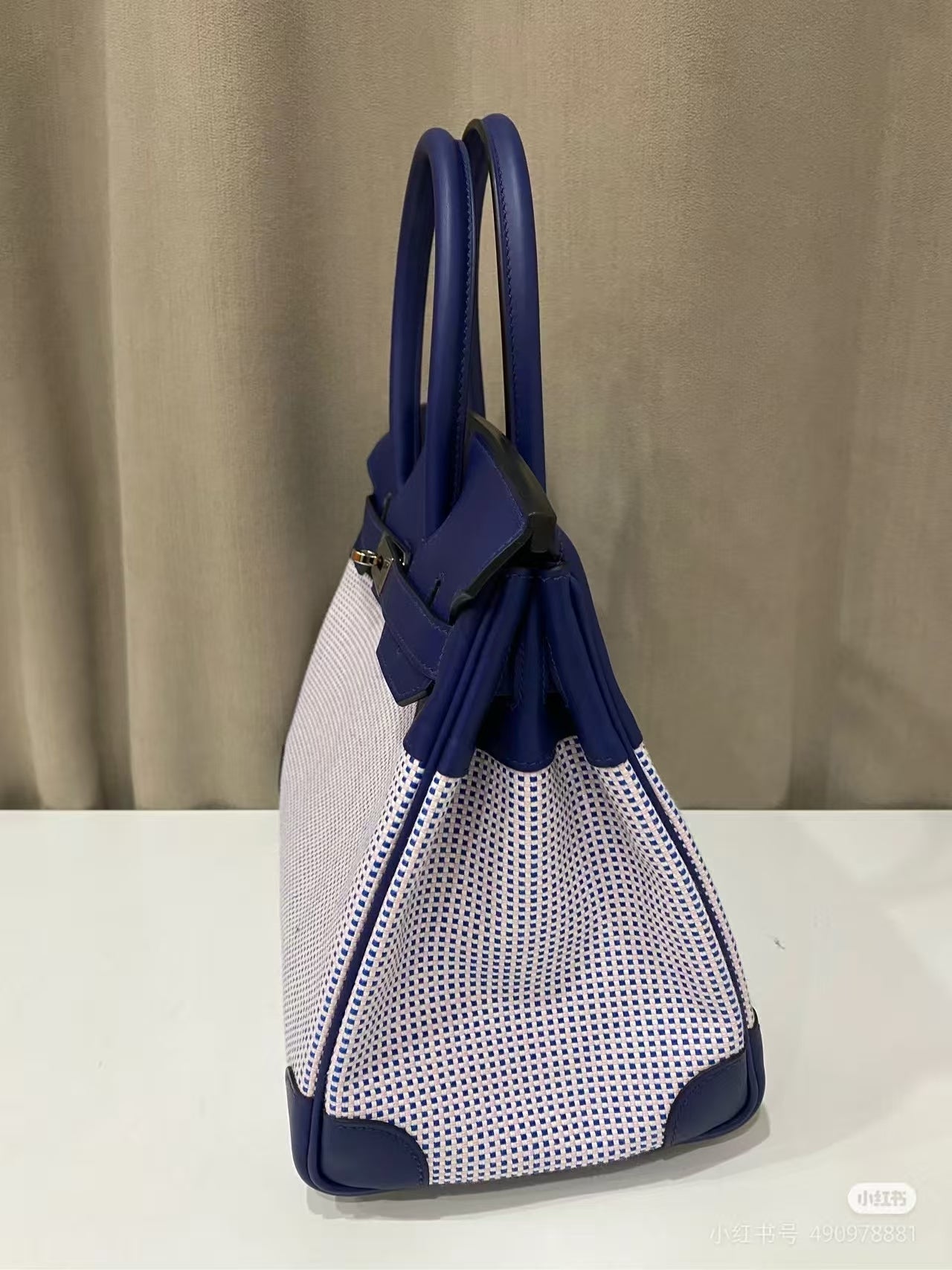 HM Birkin Blue Swift Cowhide With Waffle Light Pink Canvas Fabric Ghw (Need 25 days to prepare goods)